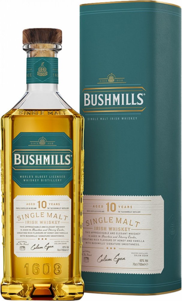 Bushmills je nejstarší licencovanou irskou palírnou. Koncesi pro výrobu komerční whiskey jí udělil anglický král Jakub I. v roce 1608. Whiskey se zde vyrábí s vysokým podílem sladového ječmene, trojitou destilací v měděných kotlíkových destilačních zařízeních. Následně zraje v sudech po bourbonu a po sherry, což ji propůjčuje nádech čerstvého ovoce a vanilky a příjemně hřejivou chuť s dotekem medu...