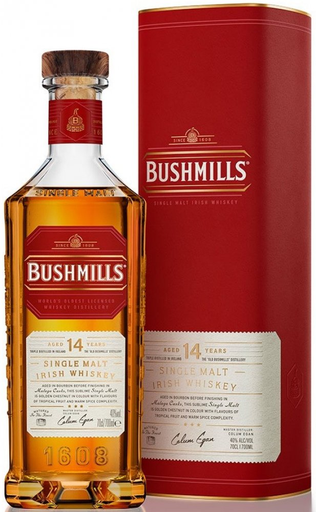 S potěšením vám představujeme tuto novou inovativní single malt whiskey z palírny Bushmills. Tento stálý přírůstek do vysoce uznávané řady irských jednosladových whiskey Bushmills vyzařuje rubínově červenou bujnost a nabízí zajímavě bohatý, sladký a jemný charakter. Díky hřejivé, jemné chuti a svěžím ovocným tónům zaujme 14letá single malt whiskey milovníky vína, přivítá začínající whiskey drinkers a nadchne i ty nejvášnivější objevitele chutí whiskey. Výhradně zraje v sudech po bourbonu s prvním a druhým plněním, zraje minimálně 14 let, včetně závěrečného až 12měsíčního zrání v sudech po Malaga, které dodává svůdnou intenzitu exotického ovoce a krásnou hladkost.