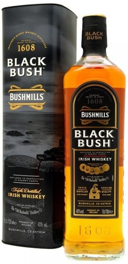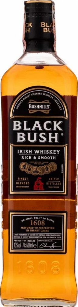 Barva: Medově jantarová Aroma: Hedvábná struktura a bohatý ovocný nádech se stopou oříšků Chuť: Jemná sladká, kořeněná a komplexní, skvěle vybalancovaná Destilace Trojitě destilovaná ze 100% sladového ječmene. Zrání Irská whisky Black Bush kombinuje výjimečně vysoké množství sladu (80 %) snoubeného se sladkou malosériovou obilnou whisky, které následně zrají v bývalých sudech po sherry Oloroso a b...