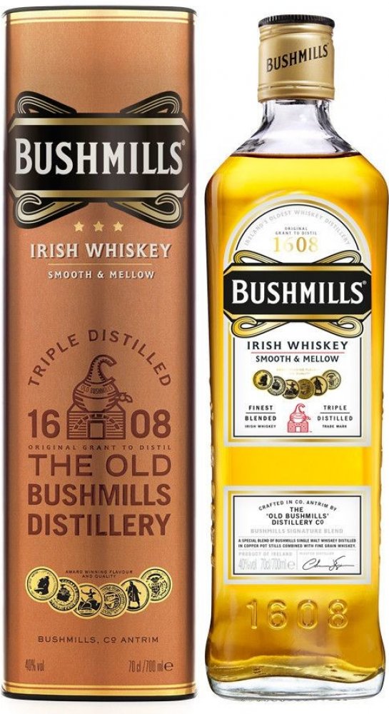 Old Bushmills Distillery je nejstarší irská destilérka whiskey. Patří jí i světové prvenství mezi licencovanými lihovary. Licenci dostala od krále Jakuba I. už v roce 1608 a v jejích zdech doslova dýchá historie Irska. Vždyť za druhé světové války tu byli ubytovaní spojenečtí vojáci a výroba se na dlouhých 6 let zastavila. Zmínku o Bushmills najdete v legendárním Odysseovi Jamese Joyce a v roce 2008 se budova palírny dokonce dostala na irské bankovky. Tradičnějí už to zkrátka nejde. Veškerá produkce Bushmills vzniká přímo ve stejnojmenné severoirské vesnici a k výrobě se používá pramenitá voda ze Saint Columb, přítoku řeky Bush. Pokud byste se chtěli podívat osobně, Old Bushmills Distillery je veřejně přístupná a velmi oblíbená turistická atrakce. Bushmills vyrábí sladové single-malt a míchané blend whiskey, které tradičně zrají v sudech po bourbonu či Oloroso sherry, ale najdou se i výjimečné lahůdky ze sudů třeba po portském. Místní whiskey se pyšní celou řadou vítězství na mezinárodních soutěžích a popularitu si získaly také za oceánem, kam je destilérka začala exportovat po zrušení prohibice.