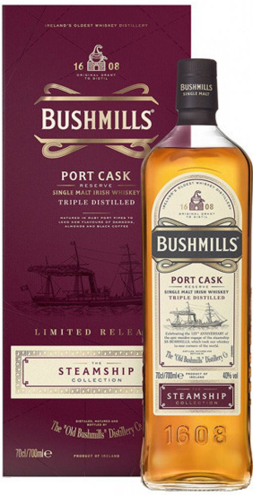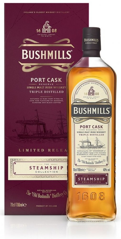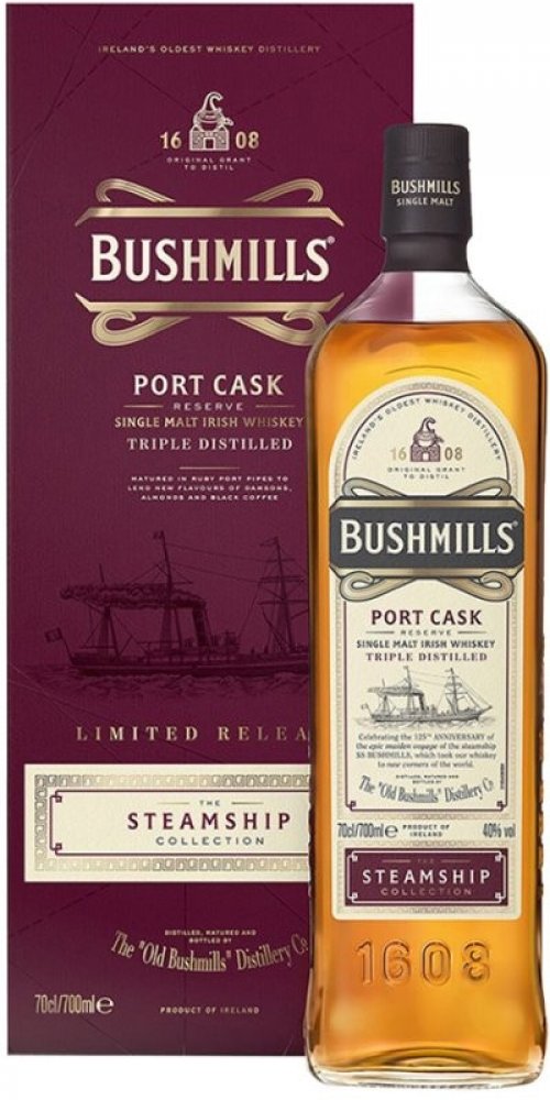 Základem výroby Bushmills Steamship Port Cask je trojnásobná destilace v měděných kotlích za použití nejlepšího irského ječmene a křišťálově čisté vody. Za svou nezaměnitelnou jemnost, vůni a výraznou chuť vděčí dozrávání v sudech po portském víně, do kterých je přemístěna po několikaletém zrání v ručně vyráběných dubových sudech. Je součástí Steamship Collection, tedy kolekce inspirované cestami ...