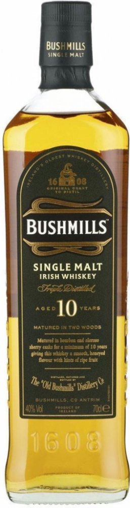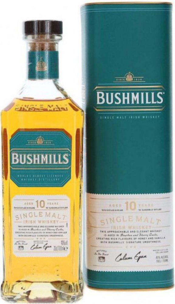 Irská whiskey Bushmills se vyrábí v nejstarší stále fungující palírně v Irsku. Díky třístupňové destilaci sladového ječmene , který zraje 10 let v převážně amerických dubových sudech, se vyznačuje jemnou chutí, která je zbavena veškerých nežádoucích příměsí do surového produktu. Zároveň i vůně, která zcela postrádá stopy kouře.