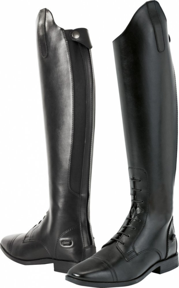 Vysoké jezdecké boty vyrobené z té nejjemnější telecí kůže s podšívkou z rychlesnoucího nylonového materiálu. Ozdobné dírkování ve stylu brogue dodává botám elegantní vzhled ( brogue - zdobení perforacemi do svrchní vrstvy kůže). Boty mají praktické šněrování na nártu s měkkým polstrovaným jazykem. Zapínání pomocí YKK® zipu po celé zadní délce s elastickou vložkou pro snadné nazouvání (elastická vložka s rozptylem až 1cm). Zip je krytý v horní i dolní části a lze zajistit koženým páskem s drukem. Vnitřní strana je vyrobena z pevné kůže se speciálními adhezivními vlastnostmi. Tento materiál poskytuje perfektní přilnutí a umožní tak, skvělý kontakt mezi jezdcem a koněm. Boty mají odnímatelnou, tvarovanou stélku s gumovou podrážkou tlumící nárazy a pevnou patu pro maximální pohodlí. Vykrojená vnější část boty je vysoká 5 cm. K dispozici i v hnědé barvě.