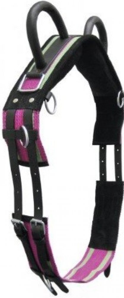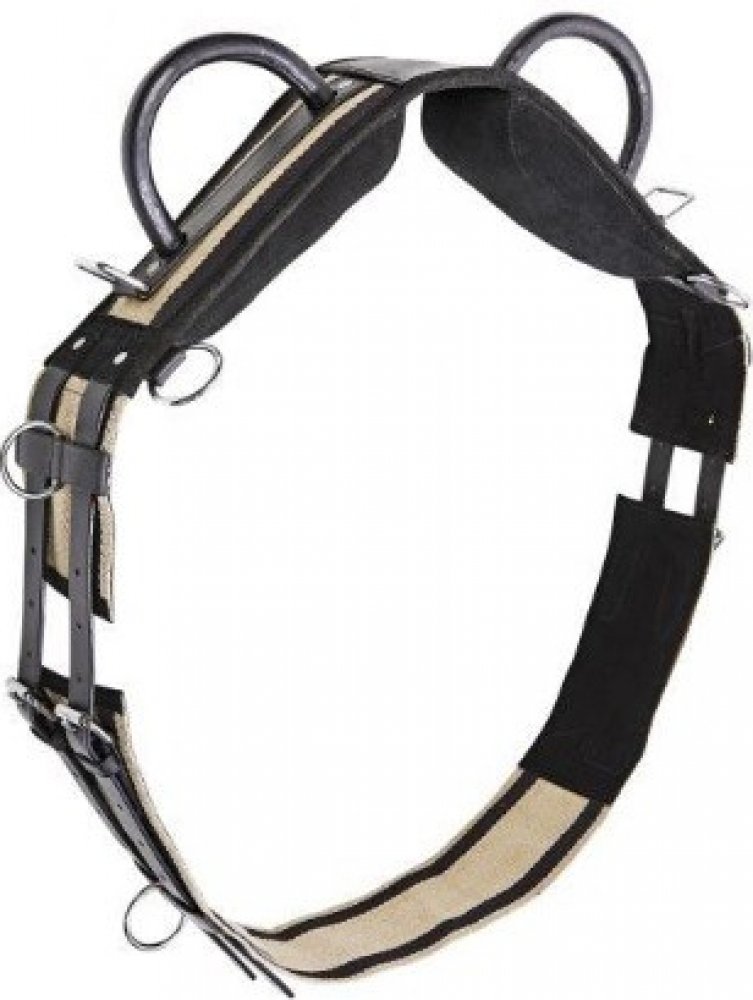 Obřišník BUSSE DOUBLE se 2 madly Pomůcka k bezpečnému lonžování dětí nebo dospělých, optimální kontakt se hřbetem koně. - dvě pevná, 8 cm vysoká madla potažená kůží - vyroben v kombinaci plátno/kůže - vysoké polstrování v oblasti kohoutku zvyšuje pohodlí koně - 6 kroužků pro upevnění lonžovacích pomůcek - šířka obřišníku: mini-shetland 7,5 cm, shetland, pony - 8,5 cm, full - 11 cm. - délka obřišníku (obvod koně): minishetty 95-140 cm, shetty 115-160 cm, pony 130-195 cm, full 165 -235 cm.