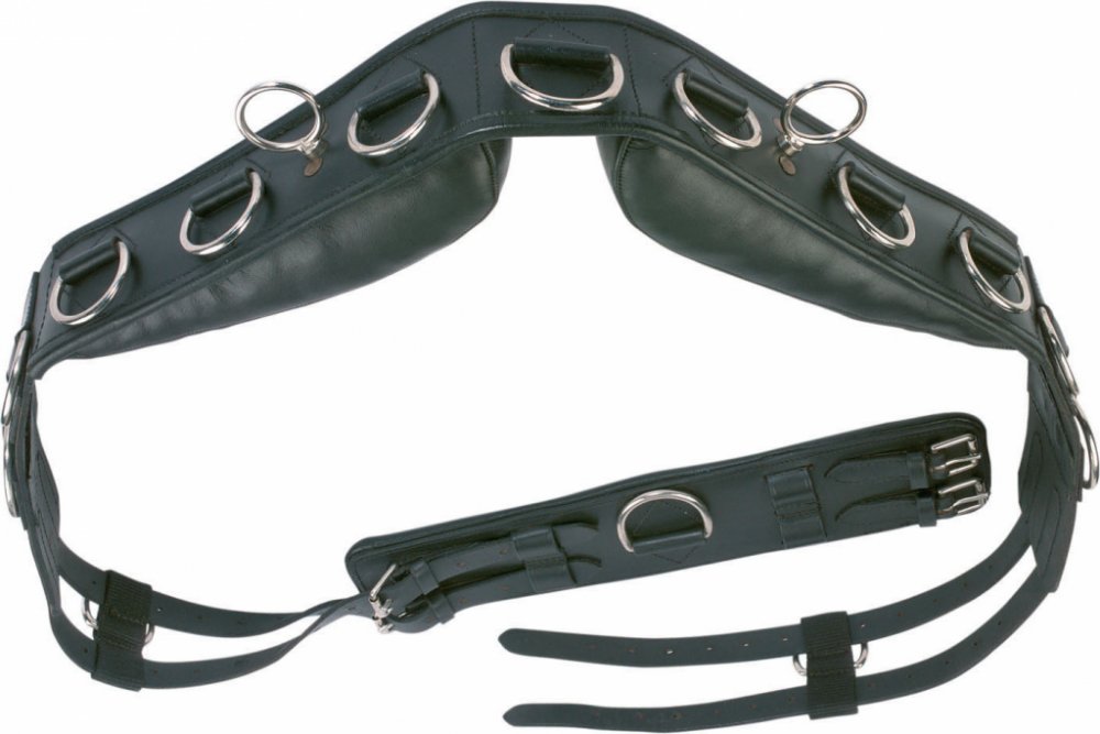Lonžovací obřišník vyrobený z kvalitní kůže s měkkým polstrováním. Díky vyššímu podložení je tento obřišník vhodný i pro koně s vysokým kohoutkem. Vybavený je dvojitým krátkým podbřišníkem s měkkým polstrováním. Podbřišník nabízí neomezený pohyb loktů s menším vznikem odřenin. Obřišník je dále vybavený několika kroužky pro upevnění tréninkových pomůcek. K dispozici pouze ve velikosti FULL. Rozměry...