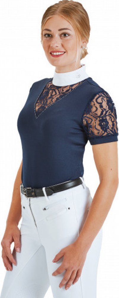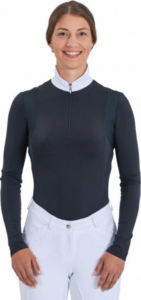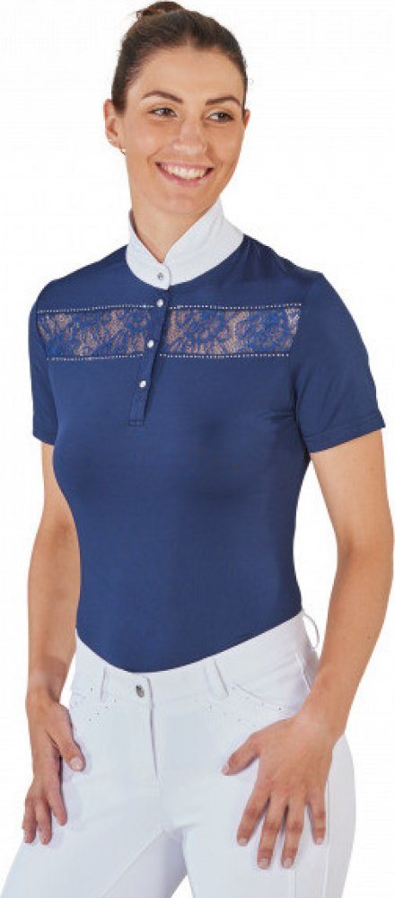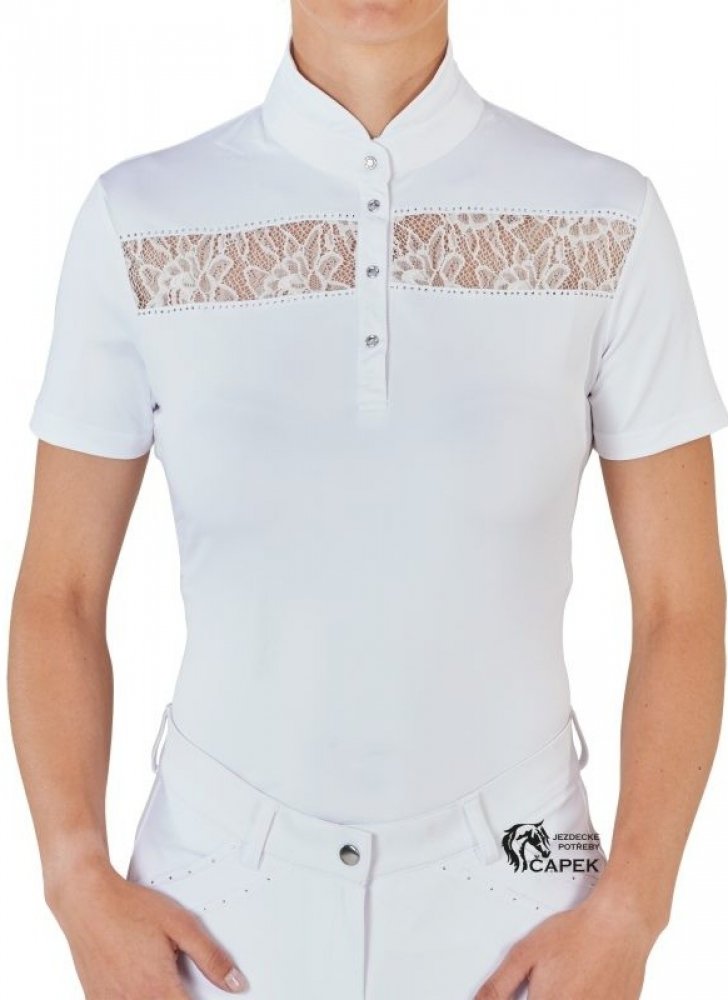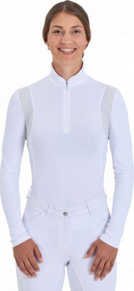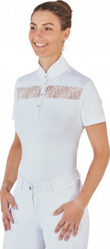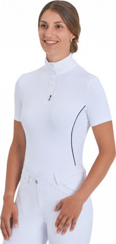 Pohodlné závodní jezdecké tričko s velmi elastickým a hezky nařaseným límečkem od značky Busse. Vyrobené z lehkého, prodyšného a elastického funkčního materiálu, který je obzvláště příjemný na nošení. Snadno se udržuje a rychle schne. Silikonový potisk loga značky rukávu a třpytivé logo na hrudi. K dispozici ve více velikostech.