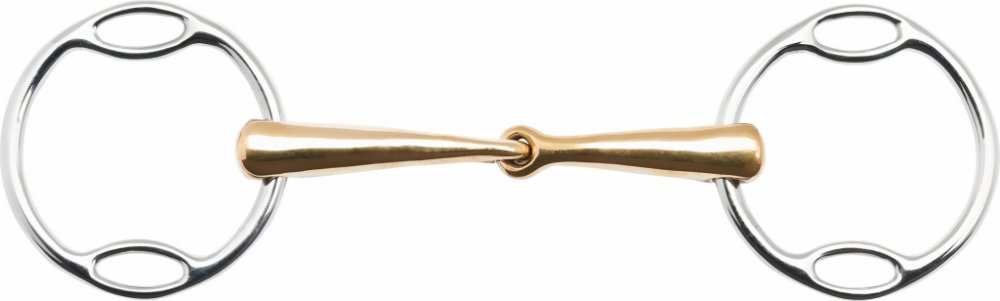 Jednou lomené udidlo beval vyrobené ze speciální nerezové oceli Kaugan®. Tato nerezová ocel zajišťuje lepší přijímání udidla a podporuje slinění. Anatomicky tvarové udítko pro vyvážený účinek na jazyk a koutky. Průměr kroužků 6 cm, tloušťka 14 mm. Beval má podobný efekt jako udidlo typu sněhulák, ale působí jemněji a s menším pákovým efektem. Jezdec může zvolit z několika pozic umístění otěží v zá...