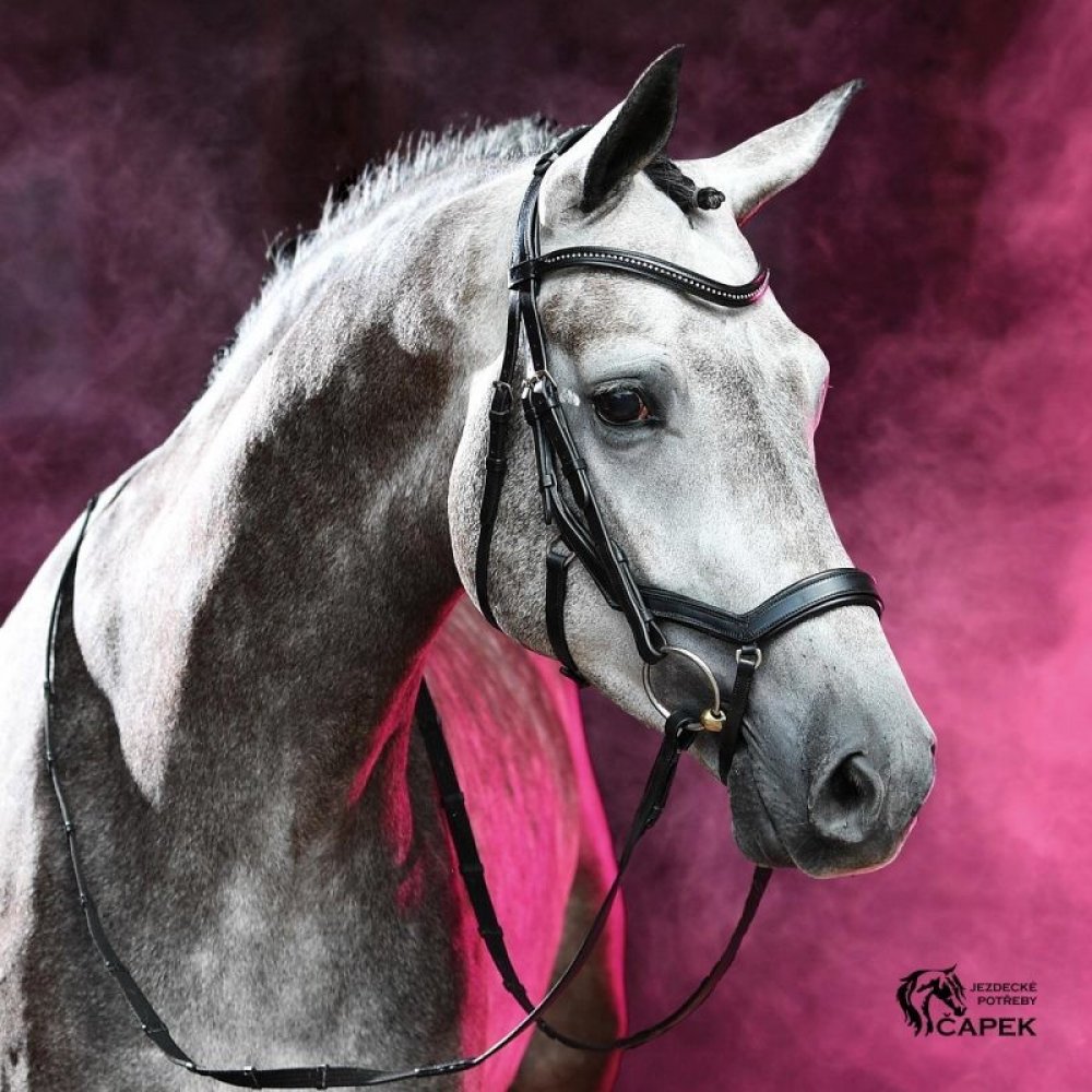 Vysoce kvalitní uzdečka s dokonalým anatomickým střihem pro cílený a stále jemný vliv. vysoce kvalitní kůže propracovaný anatomický tvar kování z nerezové oceli čelenka s jemnými stříbrnými kamínky včetně otěží s koženými zarážkami variabilní nastavení pro maximální přizpůsobení hlavě vašeho koně měkce polstrovaná Zákazníci hledají také: uzda na koně, jezdecká uzdečka
