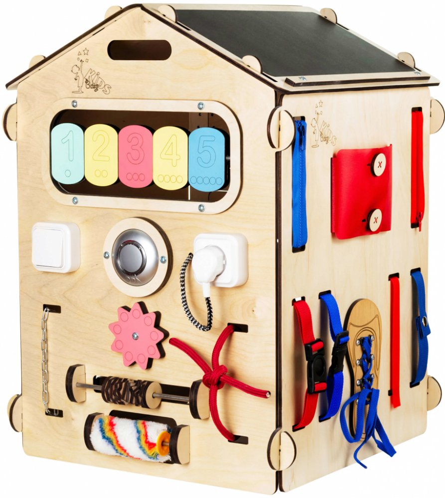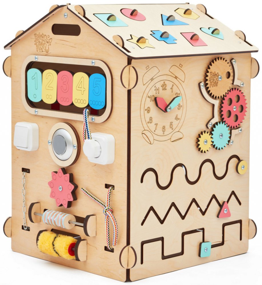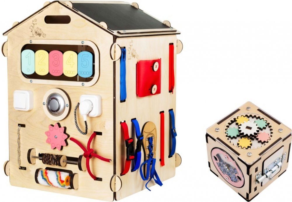 Umožňuje dětem všestranně se rozvíjet díky své přirozené zvídavosti. Domeček je složen ze 6 desek s prvky zaměřenými na zručnost, logiku, trpělivost a kreativitu. Dokáže dokonale vtáhnout do světa objevování a děti se stanou samy sobě nejlepšími učiteli.