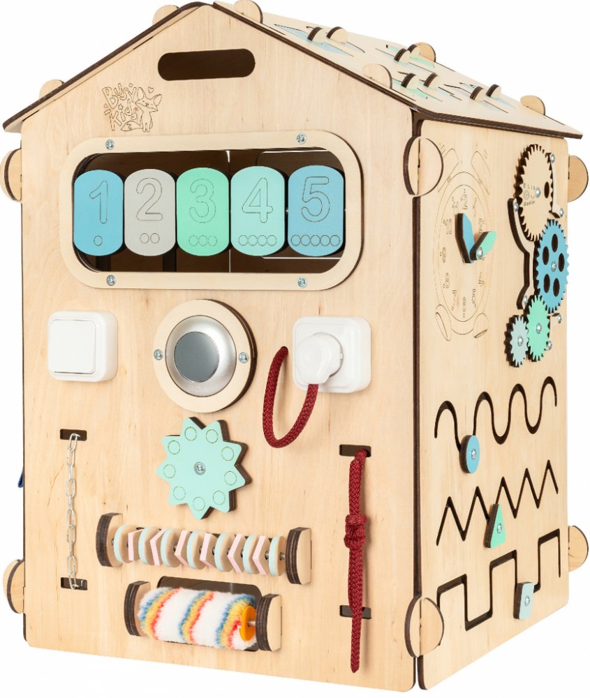 Domeček je složen ze šesti desek s prvky zaměřenými na zručnost, logiku, trpělivost a kreativitu. Dokáže dokonale vtáhnout do světa objevování a děti se stanou samy sobě nejlepšími učiteli.