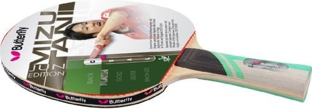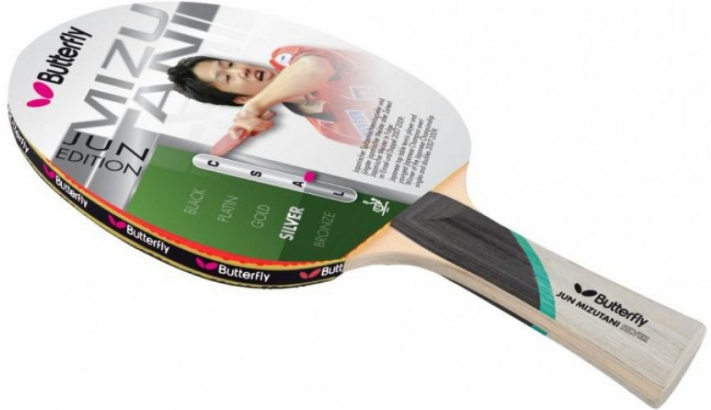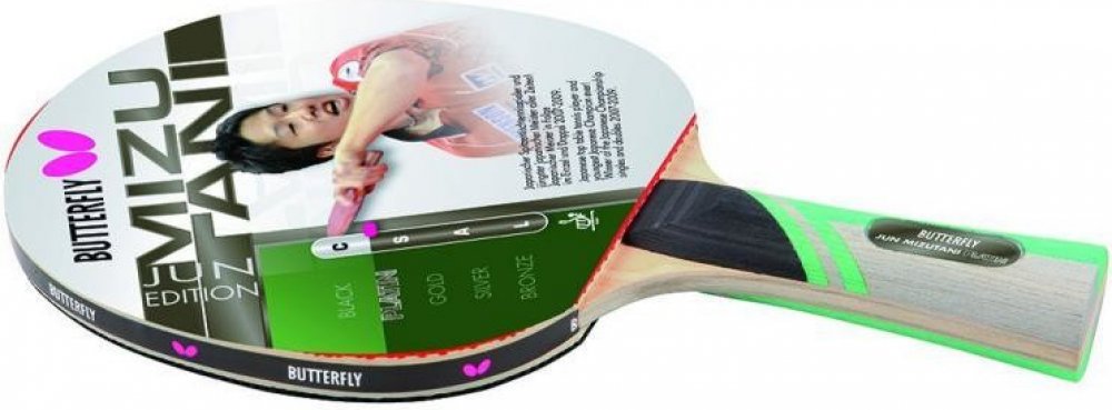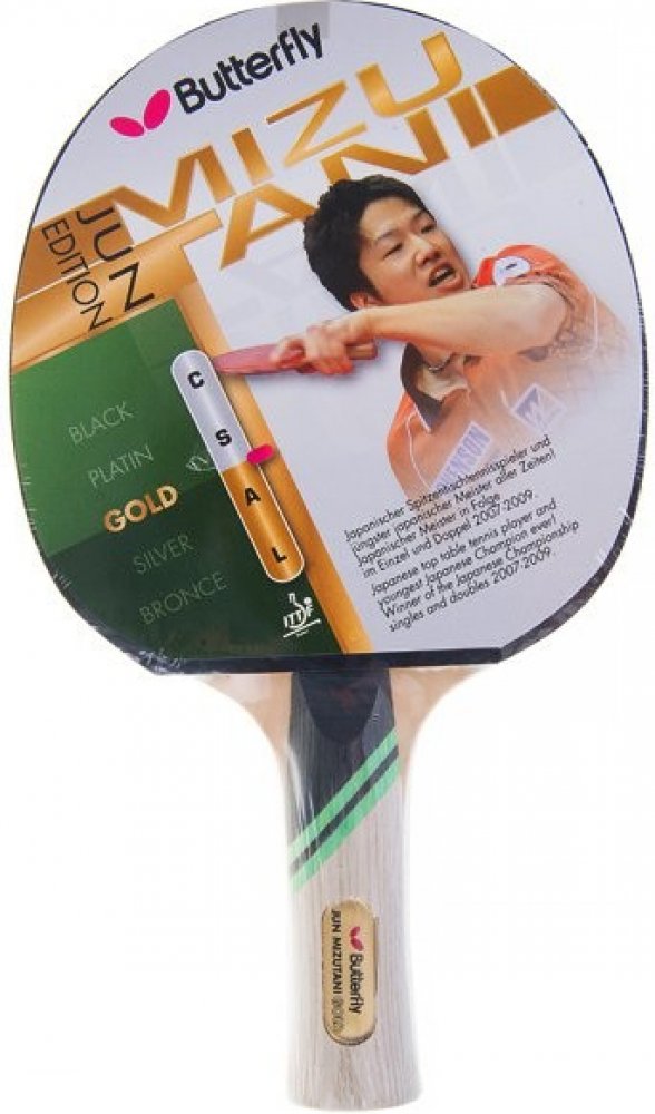Pálka na stolní tenis BUTTERFLY Jun Mizutani Platin pro pokročilejší hráče. Potahy Wakaba o síle 1,5 mm zajišťují perfektní kontrolu nad hrou. Skvělý na topspiny, kontradrive a blokování.