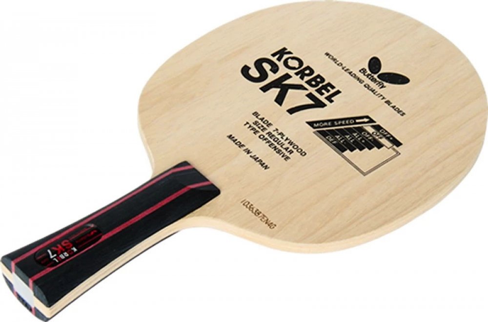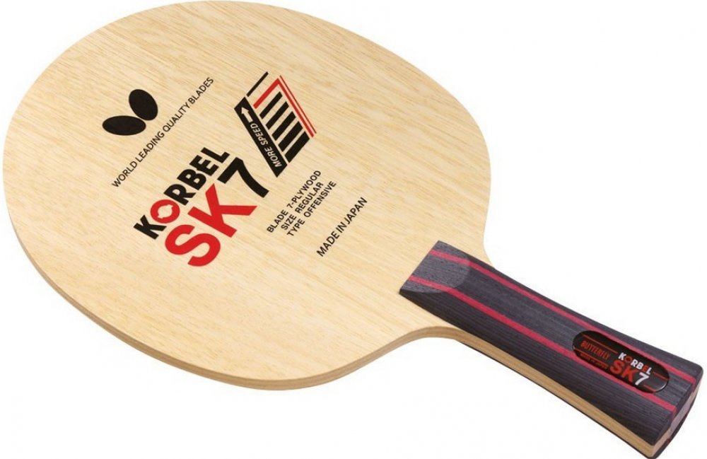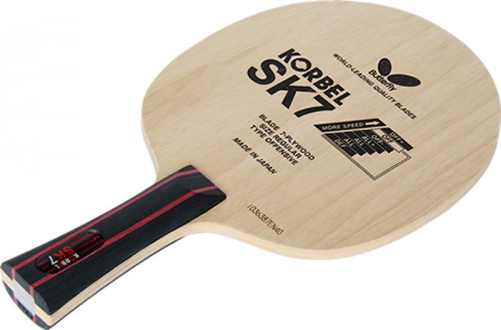 Prkno Butterfly Petr Korbel SK 7 se chlubí velmi dobrou kontrolou. Dřevo je velmi citlivé a elastické, vhodné pro tvrdou útočnou hru a topspinovou hru u stolu. Základní parametry rychlost 91 kontrola 66 počet vrstev 7 nízká hmotnost pouhých 95 gramůHraje s ním nejlepší český hráč Petr Korbel. Doporučujeme!