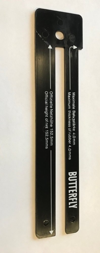 Kombinovaná měrka na výšku síťky a tloušťku potahů.