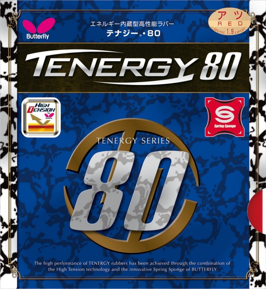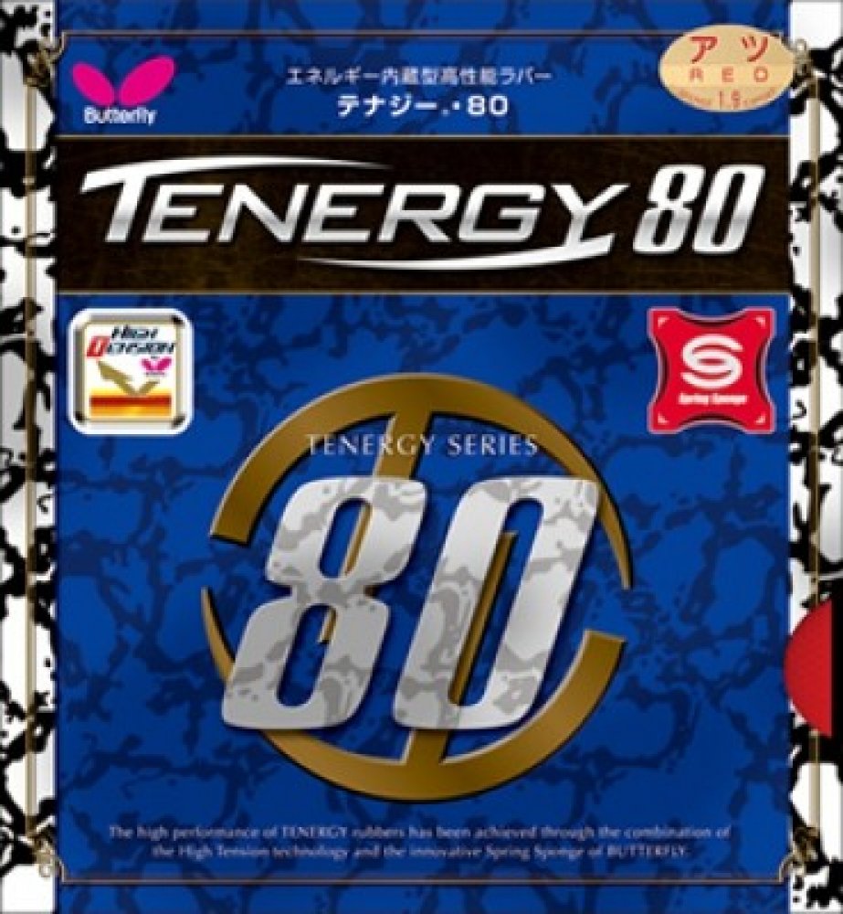 Žhavá novinka od fy Butterfly je již zde. Nejvíce používaný potah mezi stolními tenisty na celém světě (zda to platí ještě i u nás, toť otázka???) je rozšířen o další typ s technologií High Tension a Spring Sponge. Tenergy 80 zapadá dle své charakteristiky, mezi typy 05 a 64. Oproti T05 má měkčí houbu cca o 10%, ale zároveň cca o 5% tvrdší než má T64. Je nepatrně rychlejší a s větší rotací než T64, nepatrně pomalejší, ale se stejnou rotací, jako má T05. Samozřejmě je potah určený pro útočníky nebo pro všechny hráče, kteří jsou vyznavači topspinové hry, což platí i pro moderní obranáře.