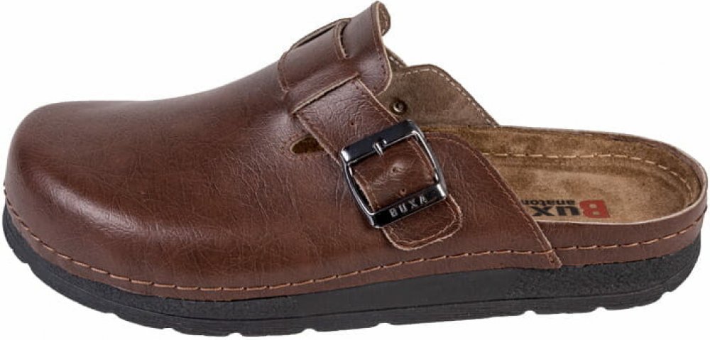 Pánské pantofle Buxa BZ420 jsou vyrobeny z měkké přírodní kůže, která zajišťuje dlouhou životnost i výjimečné pohodlí při každodenním nošení. Anatomicky tvarovaná kožená stélka podporuje zdravé postavení chodidla díky třem klíčovým zónám: podélná podpora klenby, příčná podpora klenby a podpora prstů. Díky prohlubni v oblasti paty je došlap stabilní a přirozený, což pomáhá předcházet únavě nohou. Pod pod koženou svrchní částí stélky se nachází měkká pěnová vrstva, která zvyšuje komfort i při delším stání nebo chůzi. Pantofle mají zvýšené okraje pro ochranu prstů a nastavitelnou přezku přes nárt. Ručně přišitý svršek zaručuje pevnost, odolnost a dlouhou životnost obuvi.
