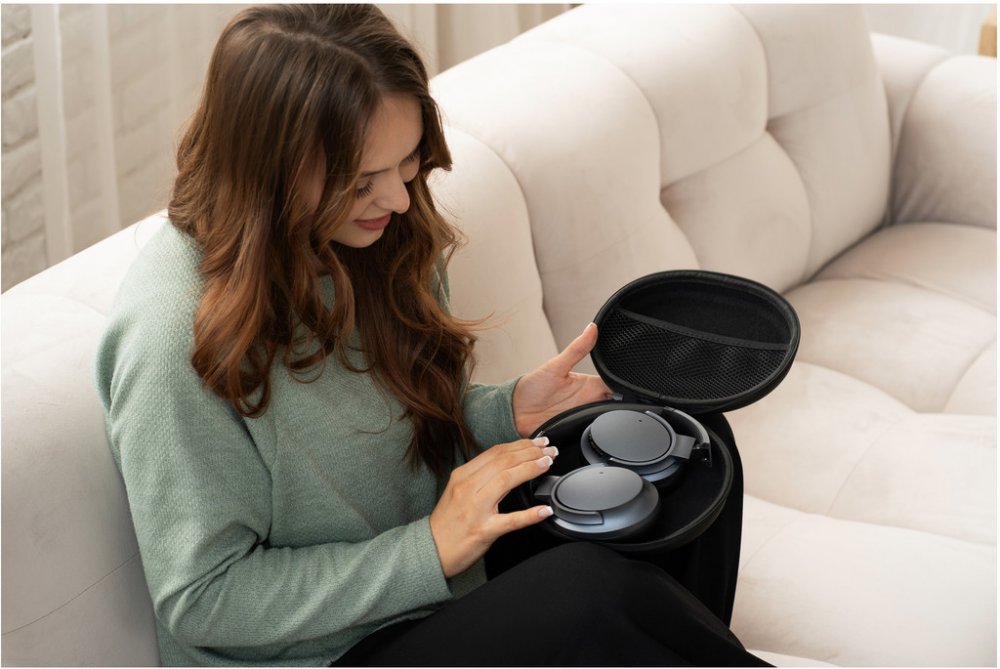 Obsah balení: náhlavní sluchátka, ochranný obal, USB-C nabíjecí kabel, USB-C - 3,5mm Jack kabel, uživatelský manuál