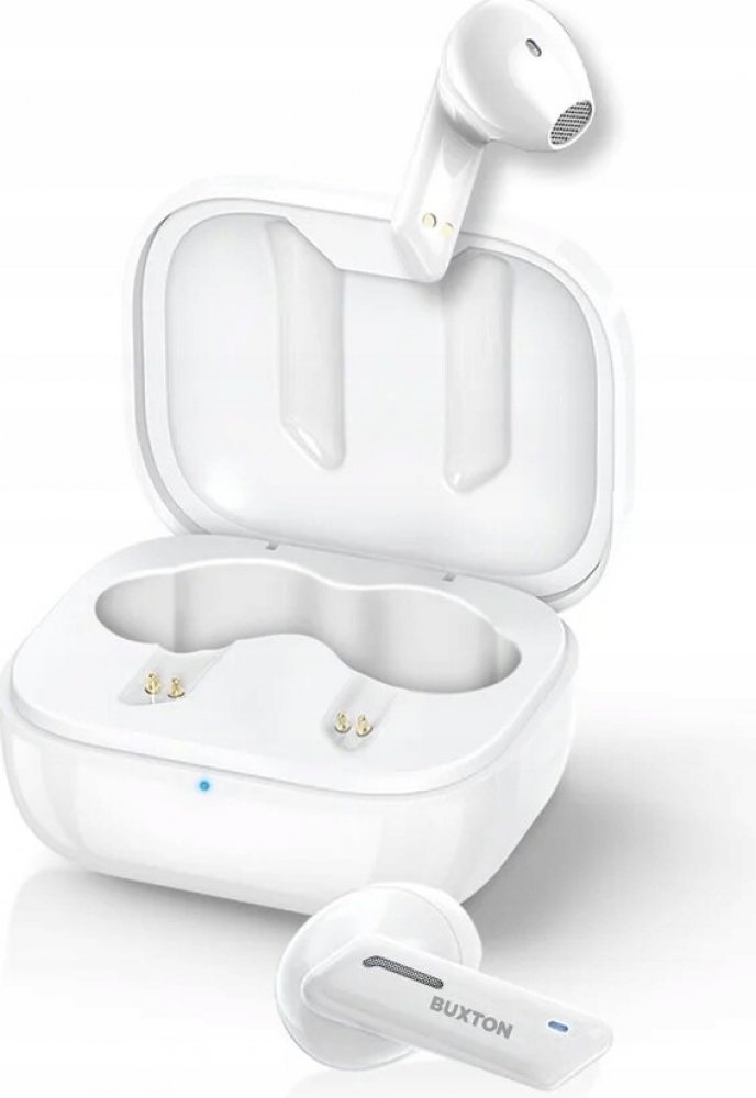 BUXTON BTW 3300 WHITE TWS sluchátka s IPX4, Voděodolná sluchátka v certifikaci IPX4, 26 hodin hraní, SIRI / Google asistent, Funkce handsfree