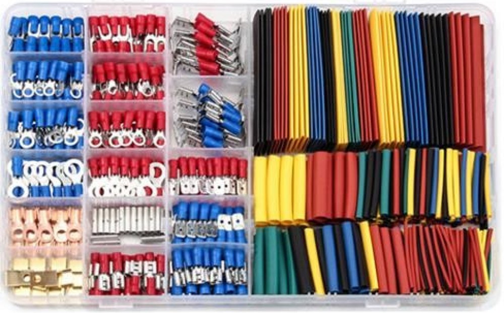 Sada 350 izolovaných konektorů plus 328 kusů polyolefinových teplem smrštitelných hadičekTechnické parametry:Velmi pevná - polyolefinový materiálPoměr smrštění: 2:1 (maximální smrštění na 1/2 dodávaného průměru)Minimální teplota smrštění: ?84 °CTeplota úplného smrštění: ?120 °CPracovní teplota: -55 °C až + 125 °CPevnost v tahu: 10,4 MPaDielektrická pevnost: 15 KV/mmVýrobní specifikace: ISO9001Hořl...