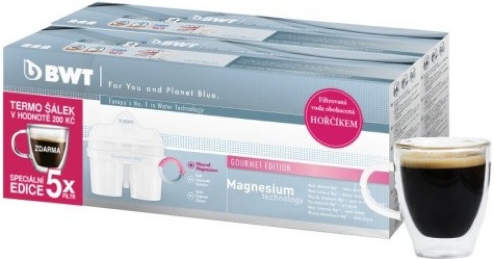 BWT vyvinula unikátní technologii Mg2+, které dává filtrované vodě vynikající, plnou přírodní chuť. Současně obohacuje pitnou vodu o ionty zdraví prospěšného hořčíku. Filtrací z vody odstraníme škodlivé látky, jako např. těžké kovy (kadmium, olovo, zinek a měď, jsou-li ve vodě přítomny)a další nežádoucí substance, jako je vodní kámen, chlór a jeho škodlivé organické sloučeniny, které zhoršují chuť vody.