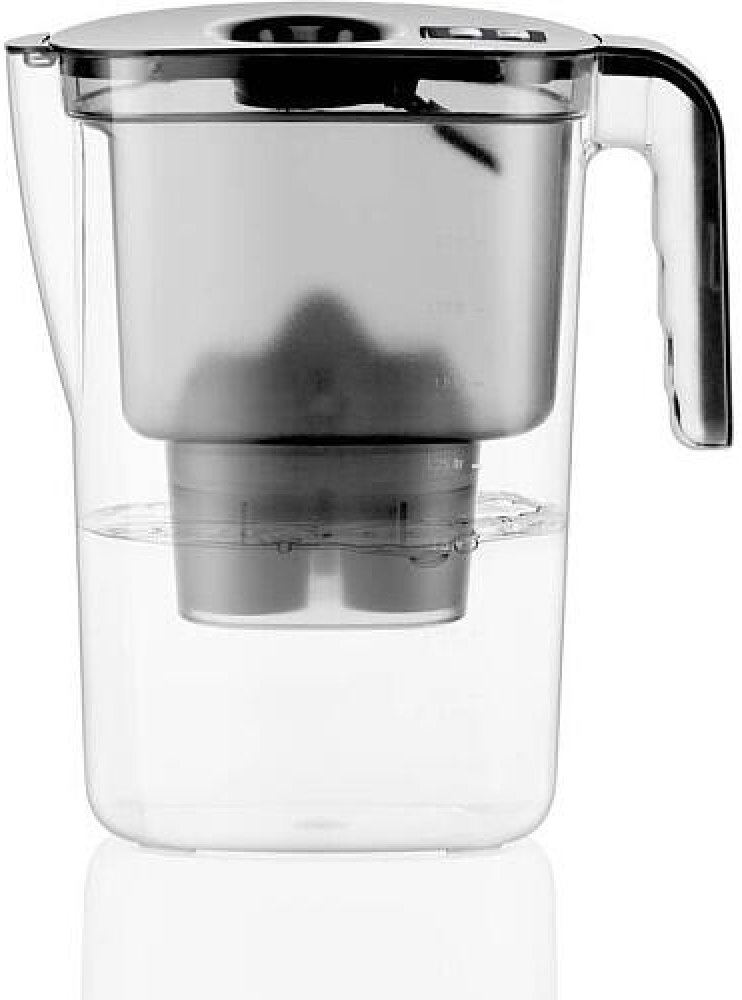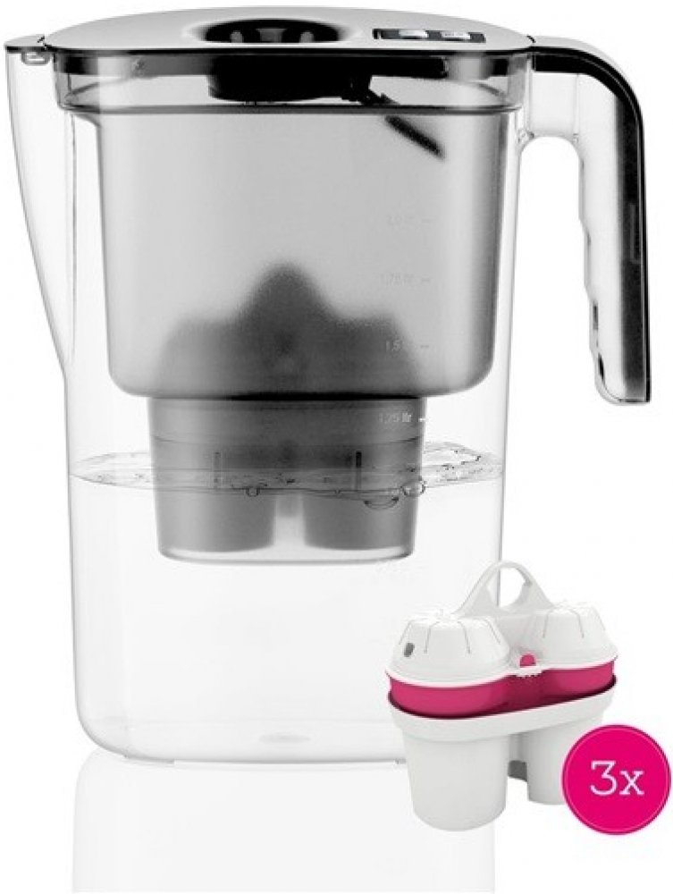 Černá filtrační konvice BWT VIDA o objemu 2.6 litru s mechanickým ukazatelem výměny filtru. Balení obsahuje tři filtry.