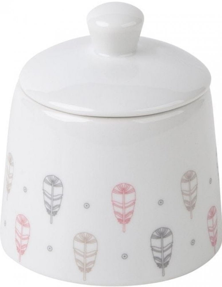 Porcelánová cukřenka z kolekce Pírka o objemu 250ml od české značky by inspire…porcelán s českou duší. Hravá kolekce v indiánském stylu. Klasická kulatá jídelní souprava s širším okrajem, zdobená indiánskými motivy v zemitých barvách – béžová, šedá, růžová.