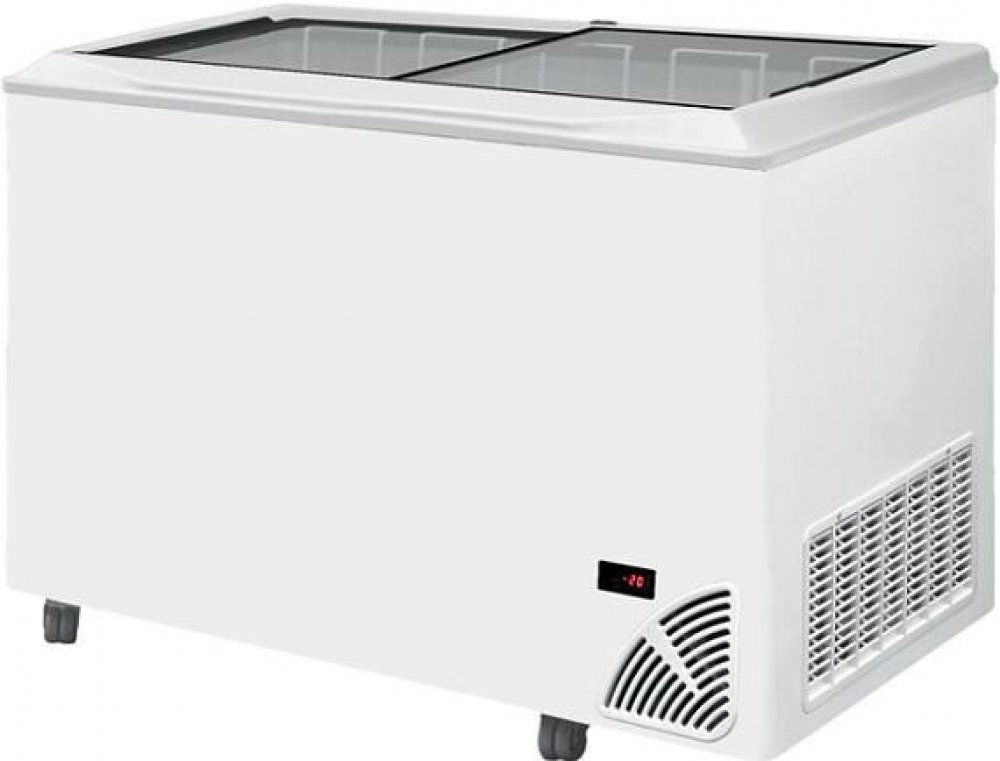 ARO 501/2 White Edge: Pultová mraznička s proskleným rovným víkem