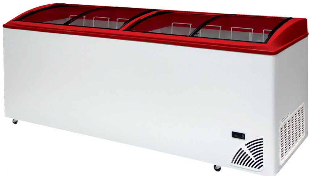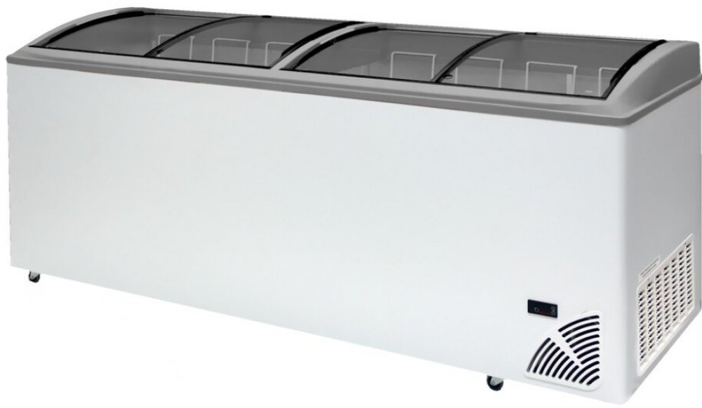 Praktické víko: Mraznička je vybavena čtyřmi prosklenými posuvnými oblými víky s bílým lemem, které umožňují skvělou prezentaci produktů a snadný přístup k obsahu. Víko je opatřeno zámkem pro bezpečné uzamčení.