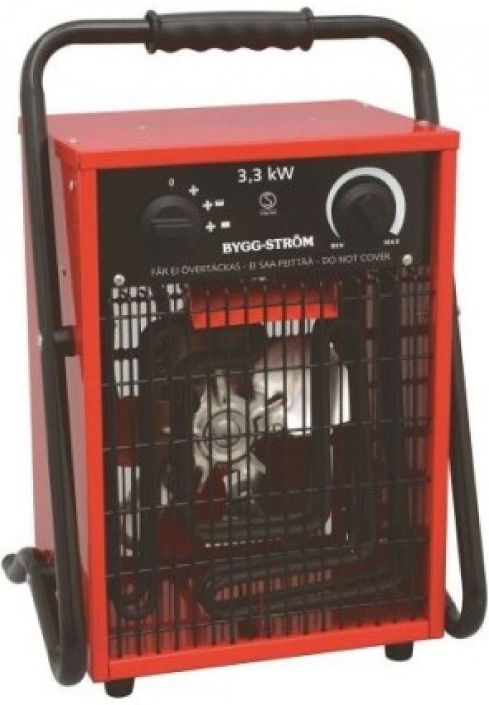 Teplovzdušný ventilátor BYGG-STRÖM s výkonem 3,3 kW je osazen běžnou vidlicí 16 A 230 V. Hodí se na vytopení menších uzavřených prostor, ideální na podlahu k nohám. Ohřívač je vyroben v bytelném celokovovém proveden z nerez oceli. Specifikace teplovzdušného ventilátoru BYGG-STRÖM 3,3kW 230V, MB-9441201 Průmyslový ohřívač BYGG-STRÖM 3,3kW 230 V MB-9441201 s vidlicí 16 A/5P 400 V se hodí pouze pro uzavřené prostory. Obsahuje kvalitní nerezové komponenty, které zajišťují dlouhou životnost zařízení. Teplovzdušný ventilátor disponuje ochranou proti přehřátí, integrovaným termostatem a třístupňovou regulací průtoku vzduchu o výkonu topení 0 -1,65 - 3,3 kW. Nabízíme i další topnou a regulační techniku, jako například topné kabely, ohřívače vody, topná tělesa, akumulační kamna, termostaty a další. Rozměry teplovzdušného ventilátoru jsou (š x v x h): 86 x 86 x 46 mm. Technické detaily ohřívače BYGG-STRÖM Teplovzdušný ventilátor BYGG-STRÖM 3,3 kW 230 V MB-9441201 se vyznačuje topnou kapacitou 1,6 - 3,3 kW. Připojovací napětí činí 230 V. Topný výkon dosahuje 3 300 W. Počet stupňů výkonu 2. Krytí IP44. Barva červená, přibližná barva RAL 3 000. Provedení na podlahu. Elektrická přípojka přívodní kabel s vidlicí. Hmotnost 5,6 kg. Vždy se řiďte postupem od výrobce. Zásahy do elektroinstalace provádějte jen tehdy, jste-li k takovému úkonu oprávněni. V opačném případě přenechte instalaci na odborníkovi s příslušným certifikátem. Certifikáty výrobku Teplovzdušný ventilátor BYGG-STRÖM 9kW 400V splňuje příslušné normy ČSN. ##VIDEO:https://www.youtube.com/embed/hhegoiDwGi0## O společnosti BYGG-STRÖM Švédská firma BYGG-STRÖM se specializuje na výrobu staveništních zásuvek, rozvodnic, gumových kabelů apod. V nabídce K&V ELEKTRO naleznete především robustní teplovzdušné ventilátory.