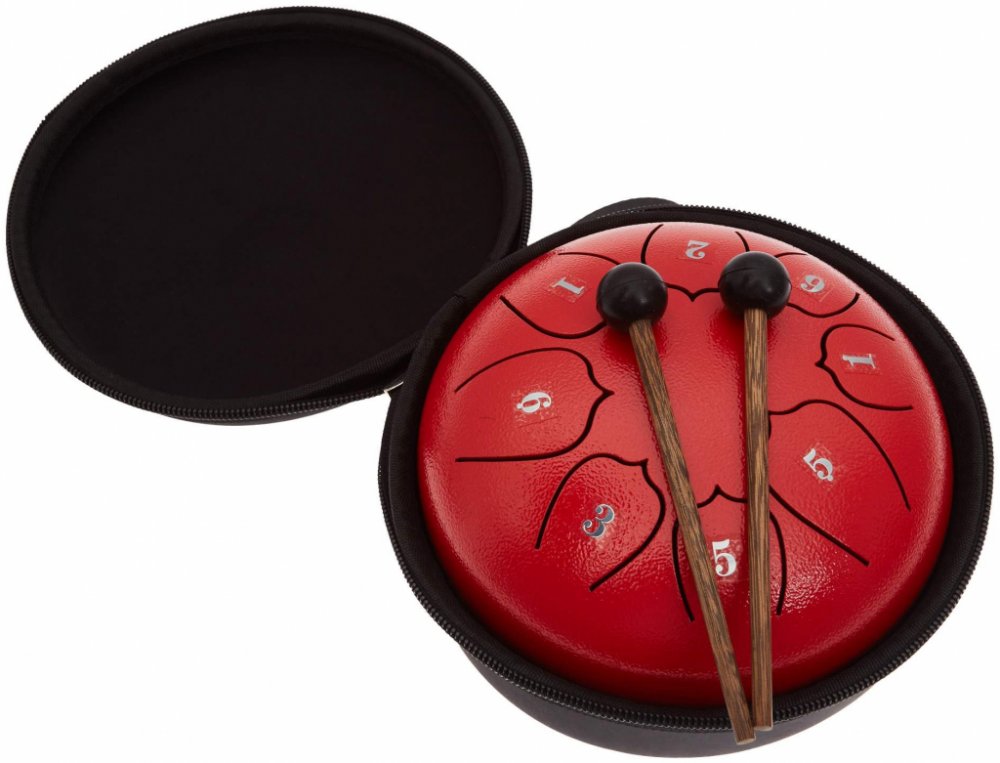 Tento tongue drum je vyroben z karbonové oceli, která je speciálně tvarována a do které jsou vyřezány přesně designované jazýčky. Při úderu paličky či ruky se celý „buben“ rozezní a díky své konstrukci vydává velmi harmonický, kulatý a jemný zvuk. Skvěle se tak hodí například při józe, relaxaci či meditaci. Své uplatnění ale nalezne jak u sólového hráče, tak i v rámci kapely. Díky jeho přirozenému ladění je navíc možné na něj hrát i bez znalostí hudební teorie, což umožní tento nástroj využívat například při výuce. V balení kromě samotného tongue drumu najdete také pár paliček, držák na paličky, čtyři prsteny pro hlasitější hru pomocí prstů, samolepky pro snadné rozlišení tónů a ochranný obal.