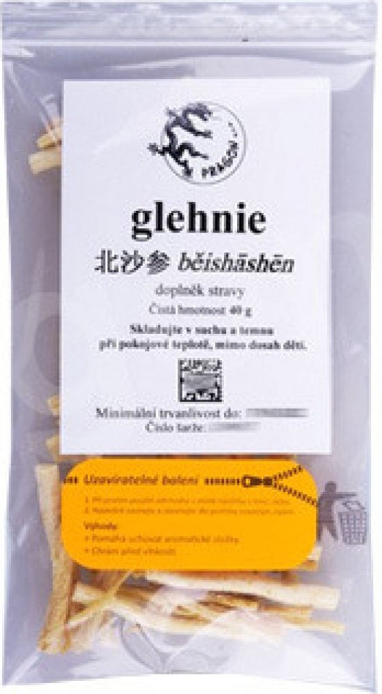 Balení obsahuje 40 g kořene glehnie, beishashenu, Glehniae radix.