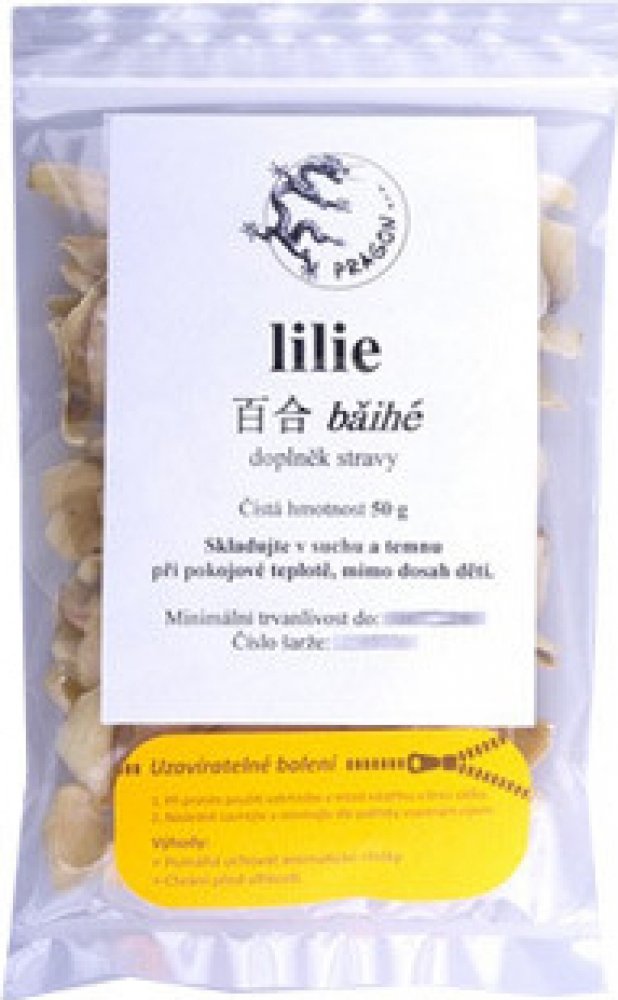 Balení obsahuje 50 g Lilie, baihe, Lilii bulbus. V Číně se užívá ve stravě mnoho prostředků a přípravků, jejichž použití a způsob přípravy nejsou u nás zatím zcela běžné. Jedním z nich je i tento, nelze ho konzumovat jako základní potravinu, ale pouze jako potravinu doplňkovou