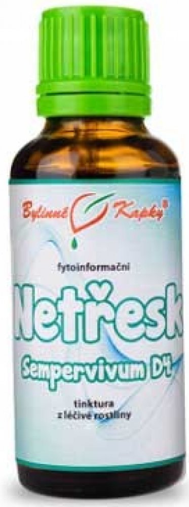Netřesk D4 (fytoinformační tinktura - bylinné kapky). Přírodní bylinný extrakt z léčivé rostliny netřesku střešního. Jedna 50 ml lahvička obsahuje přibližně 1000 kapek a vystačí na 16 - 20 dnů.U akutních potíží se dostavují výsledky většinou v řádu několika hodin až dnů, stačí tedy jedno 50 ml balení přípravku.Chronické stavy ustupují pomaleji, první výsledky se dostavují po několika týdnech či mě...