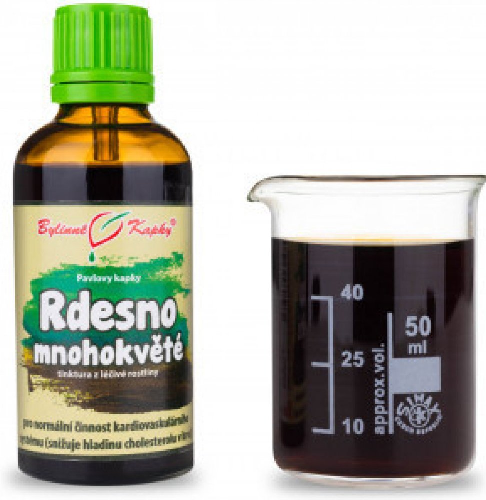 Rdesno mnohokvěté (bylinná tinktura - Pavlovy bylinné kapky). Přírodní bylinný extrakt z kořenové hlízy léčivé rostliny rdesna mnohokvětého (HE SHOU WU) pro normální činnost kardiovaskulárního systému pomocí správné hladiny cholesterolu v krvi.