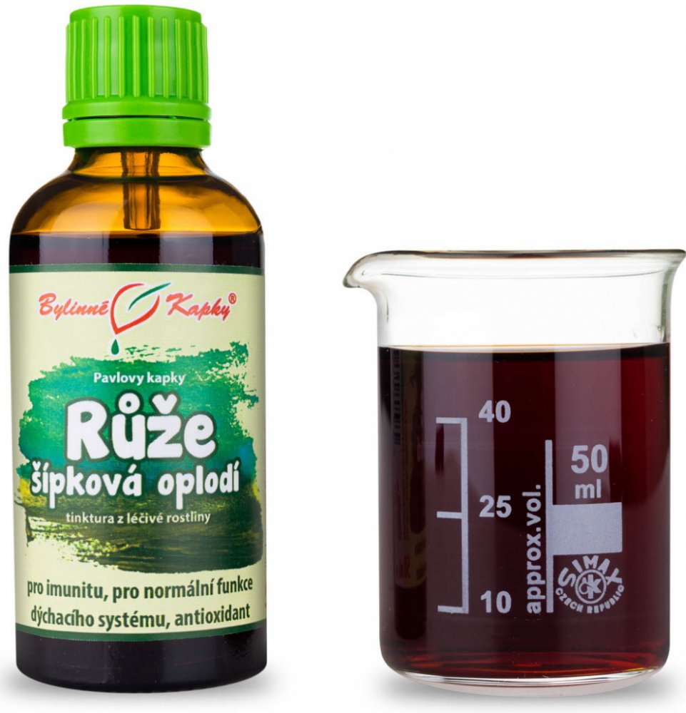 Růže šípková oplodí (bylinná tinktura - Pavlovy bylinné kapky). Přírodní bylinný extrakt z oplodí léčivé rostliny růže šípkové pro normální činnost močového měchýře a ledvin, přirozenou obranyschopnost a normální funkce dýchacího systému. V samotném oplodí šípku se nachází nejvíce přírodního vitaminu C.