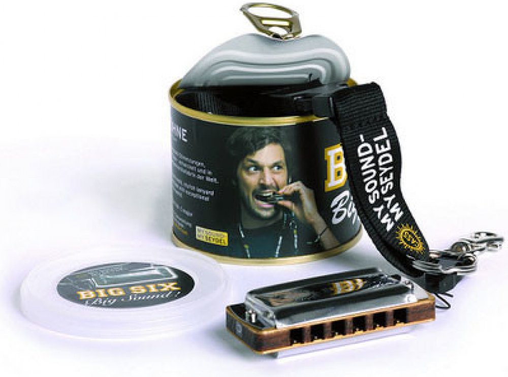 Tak toto musíte mít - BIG SIX se 6 otvory! Nepřehlédnutelný model harmoniky se skvělými hracími funkcemi: • Skvělý zvuk díky nerezovým plátkům použitým i v top modelu 1847!• S upevněním na šňůrku (v balení).• Zabaleno v plechovce, která slouží jako obal, ale také jako rezonátor pro mnohé zvukové efekty!• Pevný dřevěný hřeben.• BIG SIX Blues je standardní diatonická harmonika v tónině C (otvory 1-6...