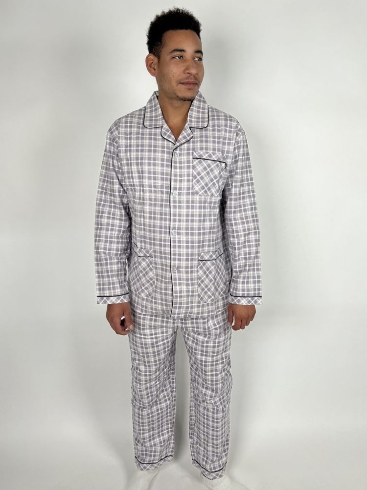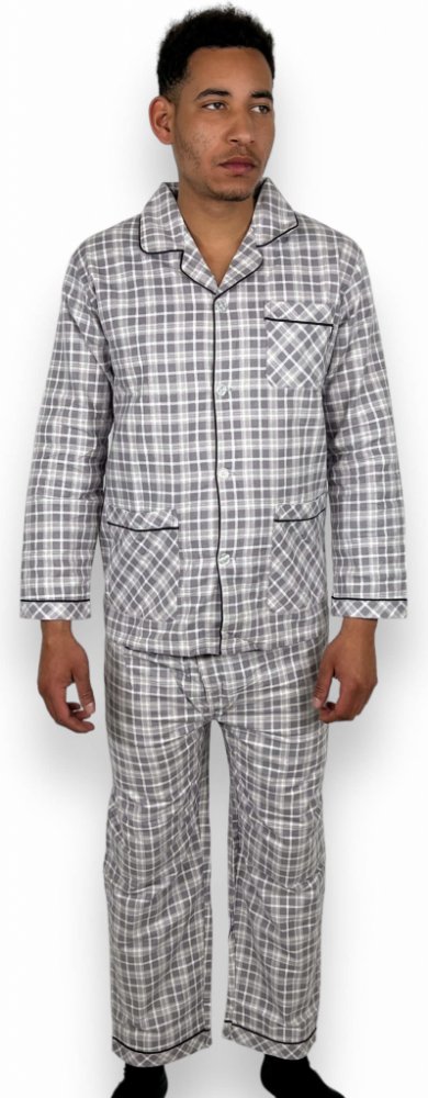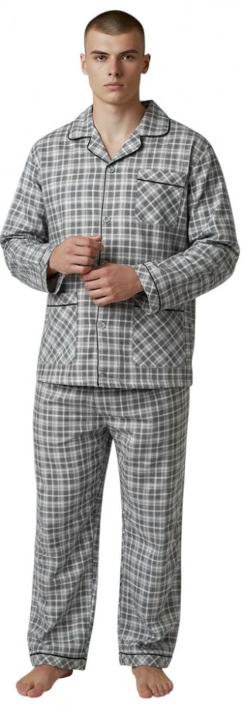 C-Lemon pánské pyžamo dlouhé propínací flanel šedé