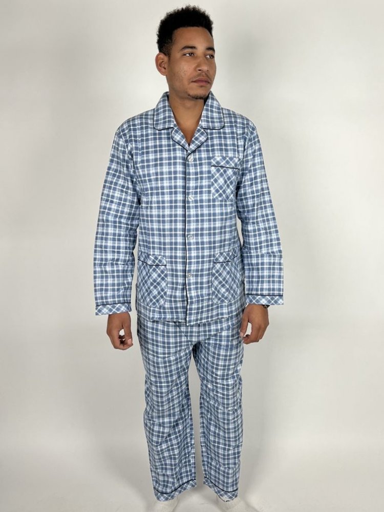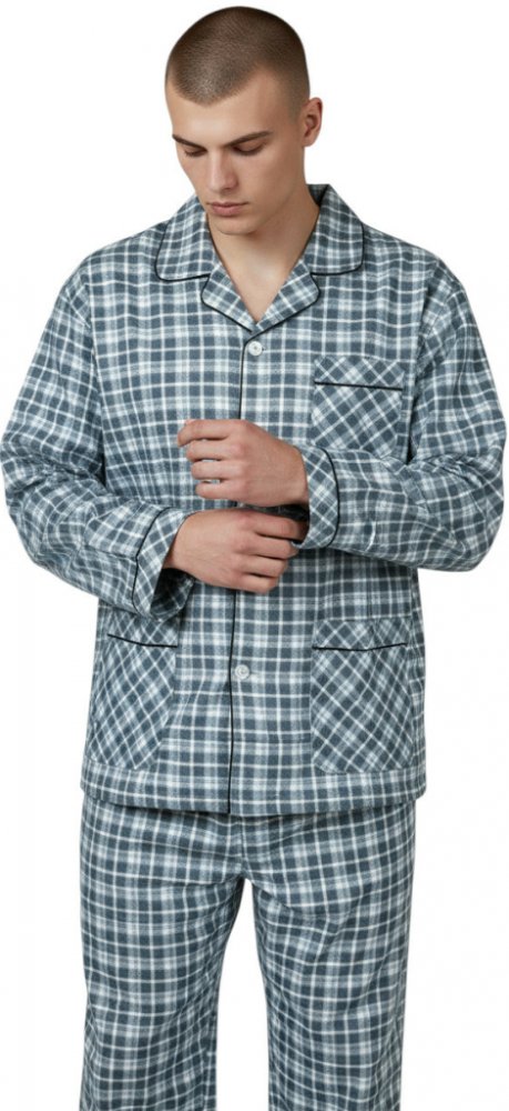 C-Lemon pánské pyžamo dlouhé propínací flanel tyrkysové