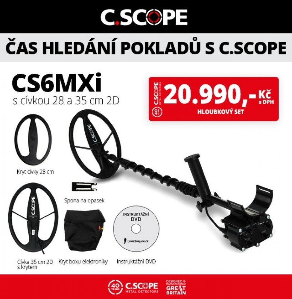 K detektoru nyní dostanete sondy 28x20 DD a 36x28 DD , kryty sond, vodící tyče sond, kryt boxu elektroniky, instruktážní DVD a sponu pro uchyzení boxu na opasek