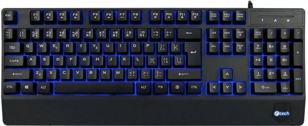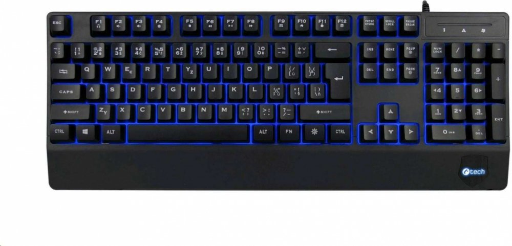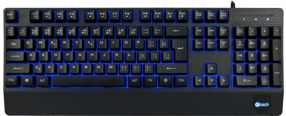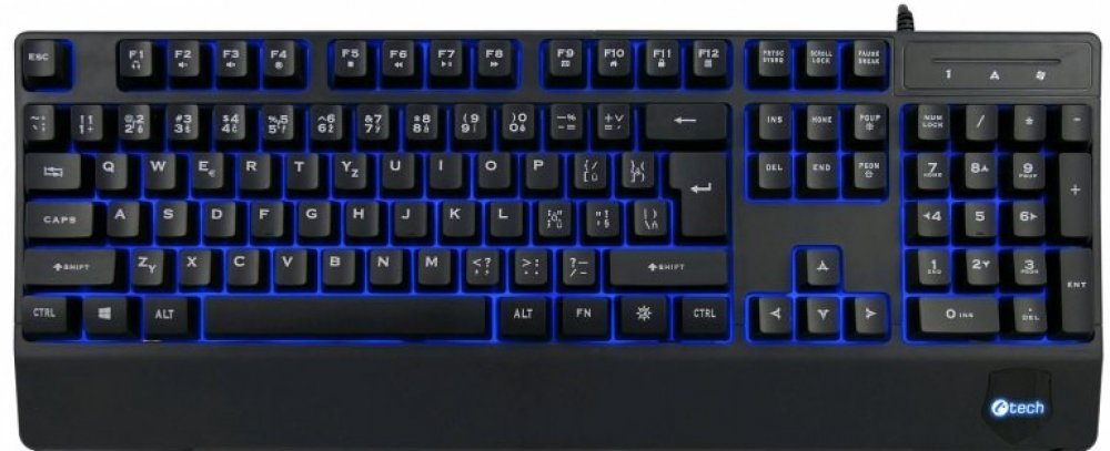 Klávesnice C-TECH KB-104BK, USB, 3 barvy podsvícení, černá, CZ/SK