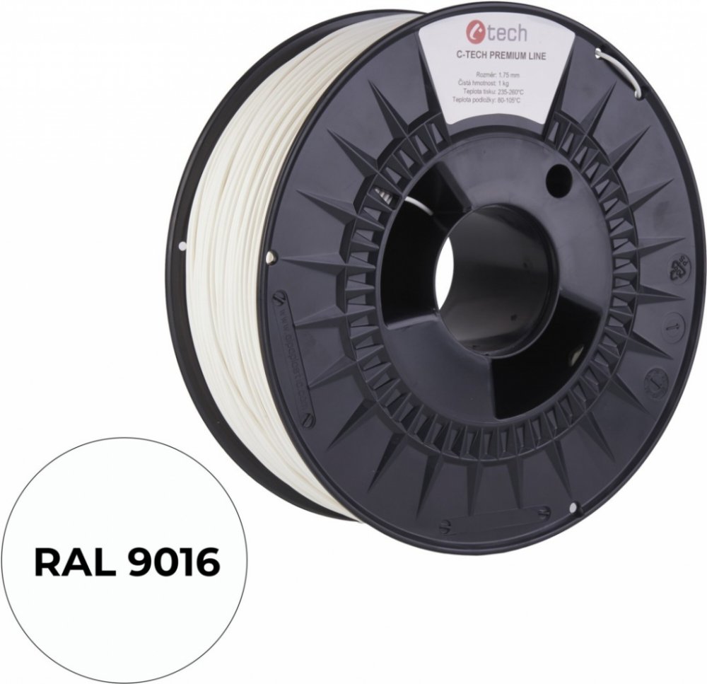 C-Tech Premium Line PETG, dopravní bílá, RAL9016, 1,75 mm, 1 kg