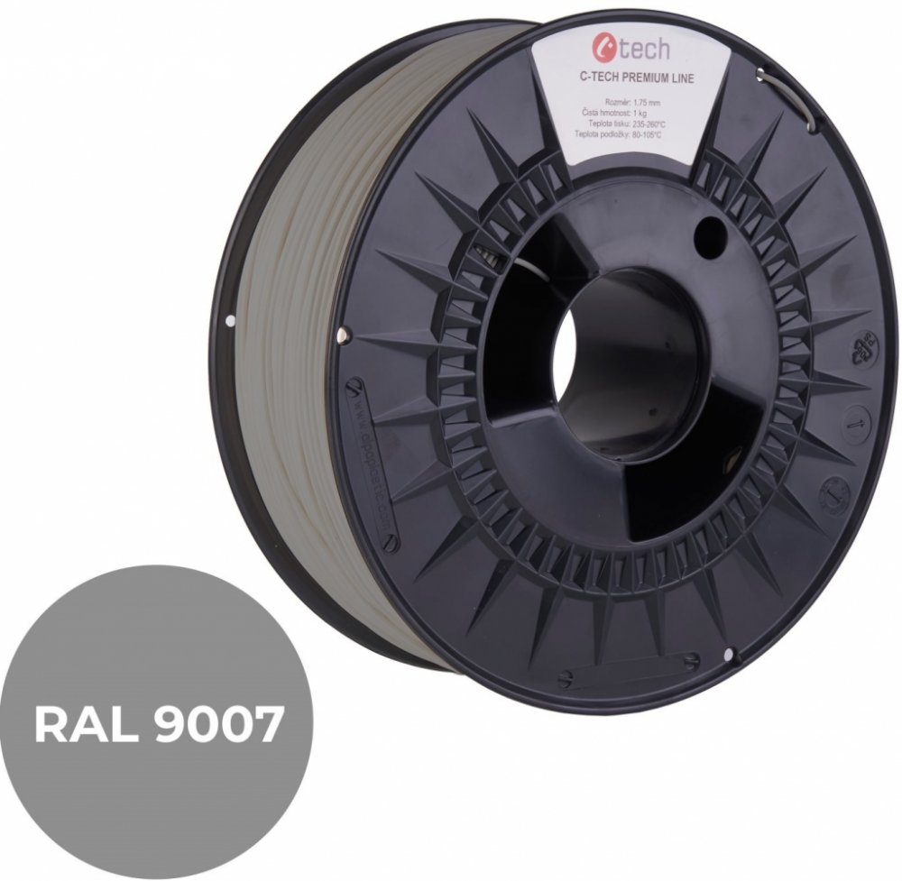 C-Tech Premium Line PETG, šedý hliník, RAL9007, 1,75 mm, 1 kg