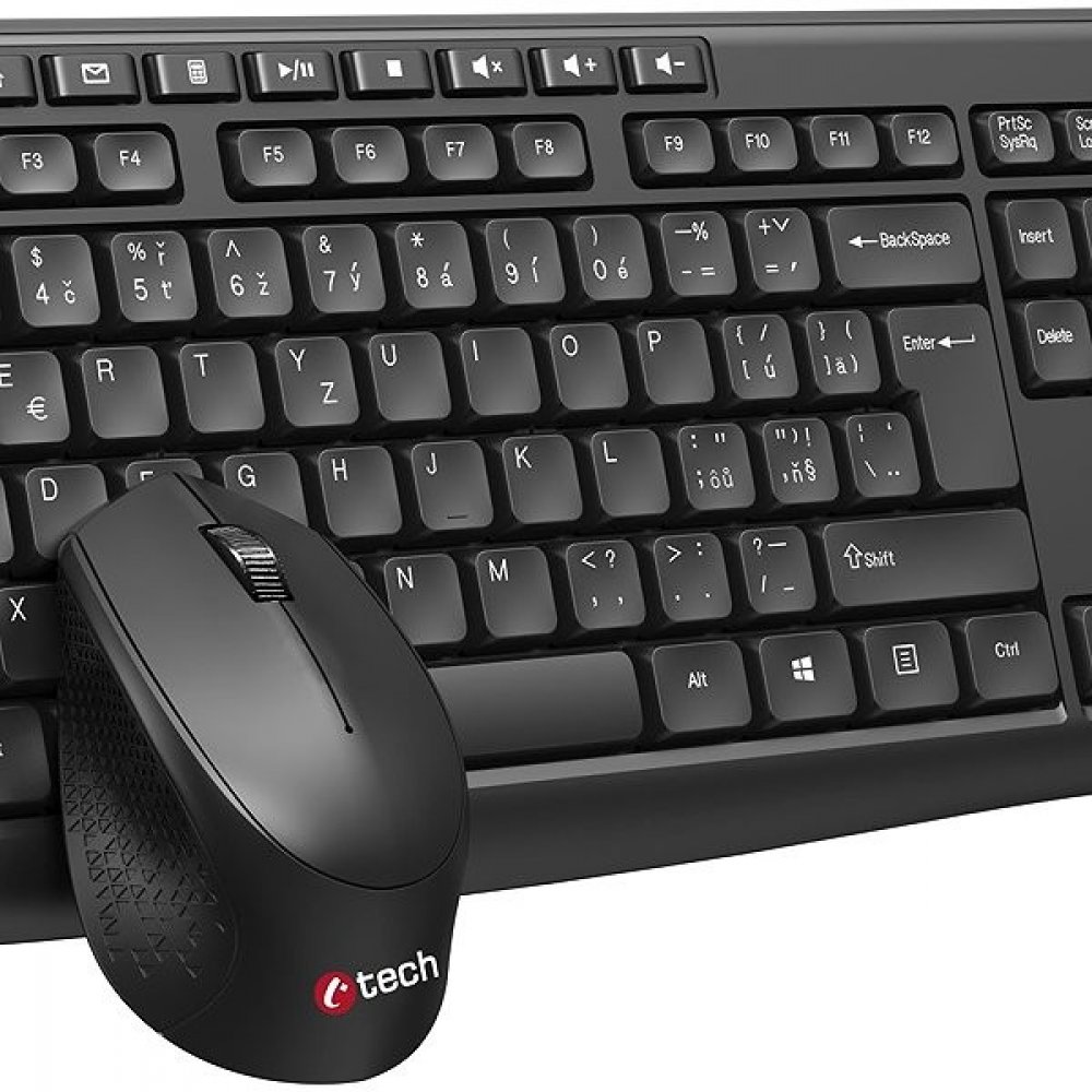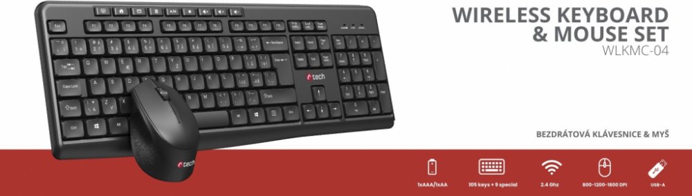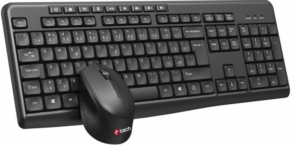 C-TECH WLKMC-04, bezdrátový set klávesnice s myší,ergonomický design,USB, CZ/SK,černá