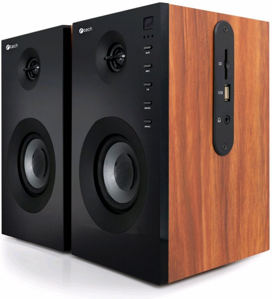 Nové dřevěné stereo reproduktory C-TECH SPK-550BT v elegantním provedení světlého dřeva a lesklého černého předního panelu se stanou skvělým doplňkem Vašeho PC nebo televizoru, u kterého výrazně povýší audiovizuální zážitek. Reproduktory mají mimo dodávané dálkové ovládání také ovládací tlačítka na předním panelu, nastavení basů a výšek na zadní straně a na boku naleznete panel s USB portem, čtečkou SD karet a výstupem na sluchátka. Jedná se o nadstandardně vybavené reproduktory, které jsou připraveny přehrávat hudbu z jakéhokoliv zdroje - včetně Vašho mobilního telefonu! SPK-550BT jsou totiž vybaveny také Blutooth připojením.Velmi příjemně své uživatelé překvapí vysoký výkon a perfektní zvuk o celkovém výkonu 20W RMS.
