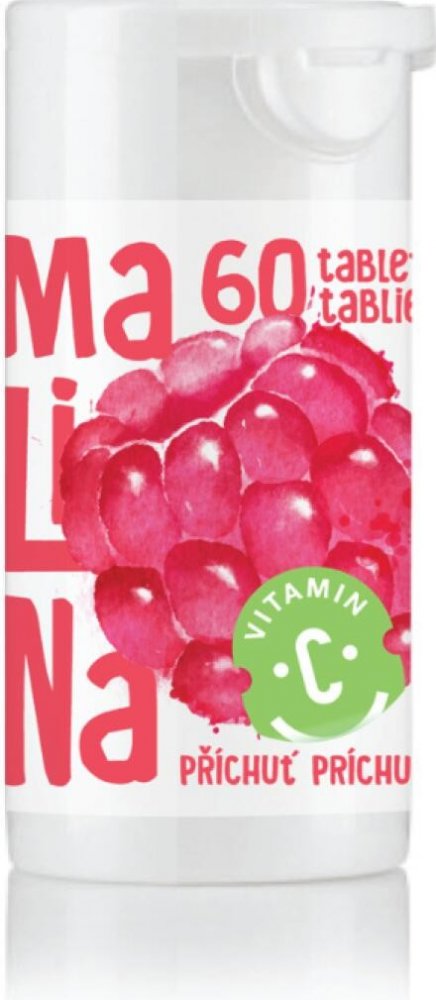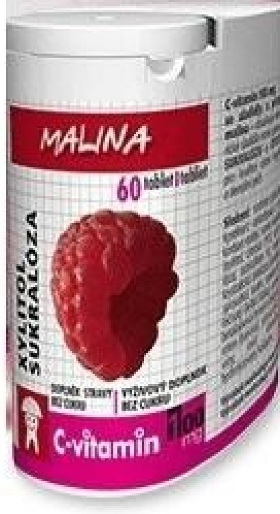 C VITAMIN s příchutí malina - obsahuje v jedné tabletě 100 mg vitaminu C. Vitamin C je do výrobku přidáván společně s přírodním zdrojem aminokyselin, proteinů, minerálních látek a velice ceněným antioxidantem - beta - karotenem. O těchto látkách je známo, že společně s vitaminem C působí synergicky, to znamená, že v našem organizmu podporují jeho účinnost. Tato kombinace se ukázala jako velice příznivá nejen z hlediska účinnosti výrobku, ale také z hlediska vyvážené a vynikající chuti, kterou ocení jak dospělí, tak i děti.
