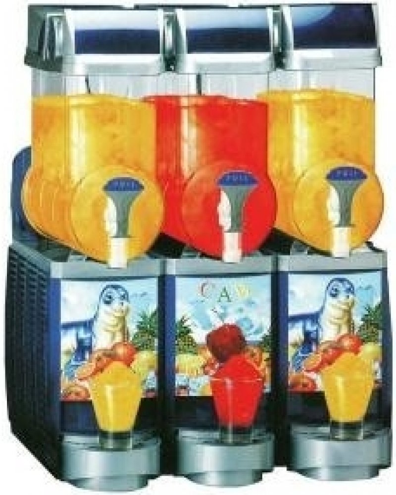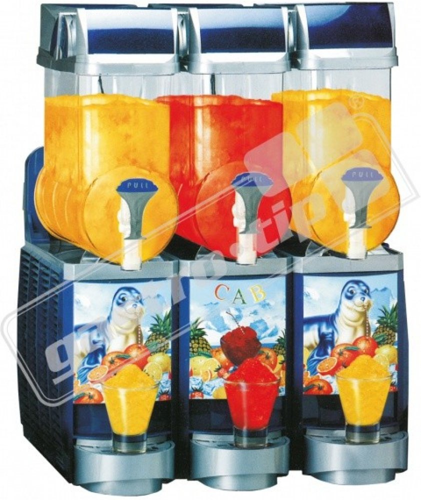 Výkonný třízásobníkový model vhodný pro většinu běžných provozů umožňující výrobu většího množství ledové tříště (granity) a jogurtových nápojů. Model je vzduchem chlazený, má horizontální mísící lopatky, osvětlení nádob a samoobslužné dávkování nápoje. Zařízení jsou jednoduchá na obsluhu a čistění, rychlá pro přípravu a namražení nápojů s poměrně nízkým příkonem (ekonomický provoz), atraktivní de...