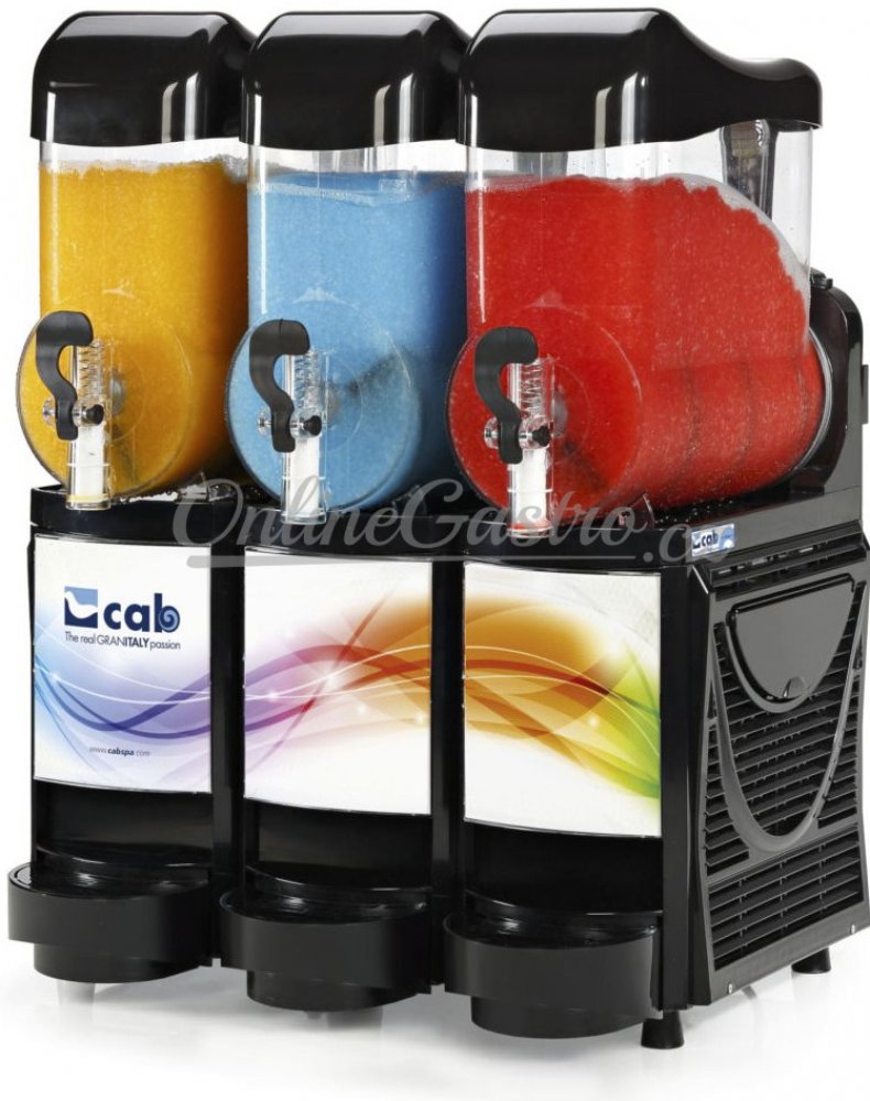 Výrobník ledové tříště, speciálních mražených jogurtových nápojů a zmrzlin Faby SL2. Nápoje mohou být připraveny na mléčné bázi s alkoholovou směsí. Funkce noční režim, udržující nápoje v dobré kvalitě. Objem 3x 10 l Modely řady Faby Skyline navrženy pro výrobu ledové tříště, speciálních mražených jogurtových nápojů a zmrzlin. Nápoje mohou být připraveny na mléčné bázi s alkoholovou směsí. Linie Skyline je vybavena funkcí "noční režim", která umožňuje udržet nápoje v dobré kvalitě přes noc s minimální spotřebou energie. Přední kryt výrobníku umožňuje využít pro reklamu nebo kreativní design. Jedinečný patentovaný LED osvětlovací systém kvalitně osvětlí jednotlivé zásobníky a celé zařízení (bezpečně umístěn za zásobníkem pro snadné mytí a údržbu). Nový ovládací panel s plastovým krytem chránící jej před vnějším poškození. Výběr nových materiálu, tvarování opláštění a kvalitní chladící systém umožnilo dosáhnout nejlepších výsledků při chodu a chlazení stroje i v nejextrémnějších podmínkách. Vlastnosti Faby SL3 modely řady Faby Skyline navrženy pro výrobu ledové tříště, speciálních mražených jogurtových nápojů a zmrzlin nápoje mohou být připraveny na mléčné bázi s alkoholovou směsí linie Skyline je vybavena funkcí "noční režim", která umožňuje udržet nápoje v dobré kvalitě přes noc s minimální spotřebou energie přední kryt výrobníku umožňuje využít pro reklamu nebo kreativní design jedinečný patentovaný LED osvětlovací systém kvalitně osvětlí jednotlivé zásobníky a celé zařízení (bezpečně umístěn za zásobníkem pro snadné mytí a údržbu) nový ovládací panel s plastovým krytem chránící jej před vnějším poškození výběr nových materiálu, tvarování opláštění a kvalitní chladící systém umožnilo dosáhnout nejlepších výsledků při chodu a chlazení stroje i v nejextrémnějších podmínkách barevné provedení: černá (bílá na objednávku) rozměr (š × h × v): 600 x 480 x 800 mm příkon: 110 W napětí: 230 V hmotnost: 73 kg chladivo: R404a objem: 3 x 10 l