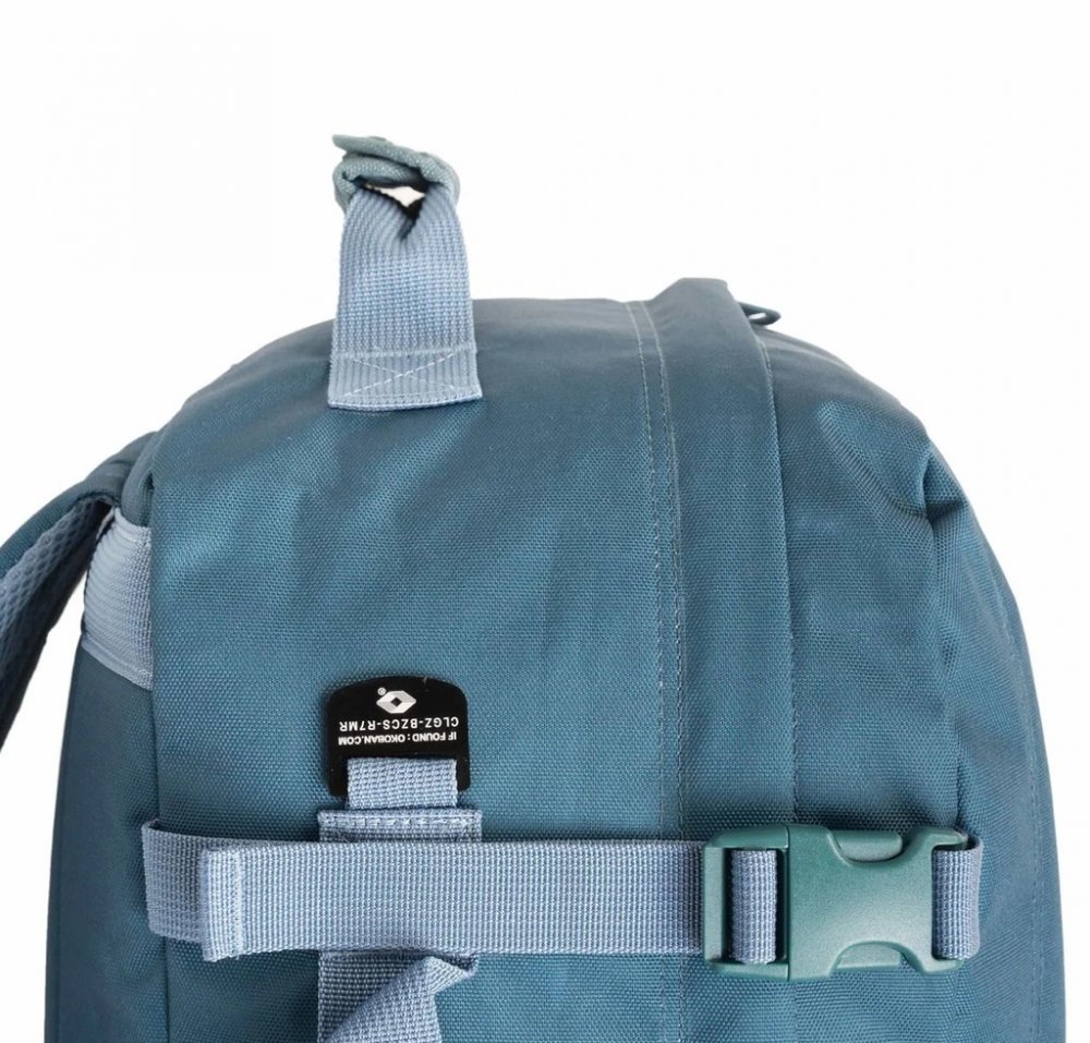 Z boku batohu je integrovaný štítek Okoban Global Luggage Tracker s unikátním kódem, díky němuž se může zpět do rukou svého majitele dostat ztracené a znovu nalezené zavazadlo.