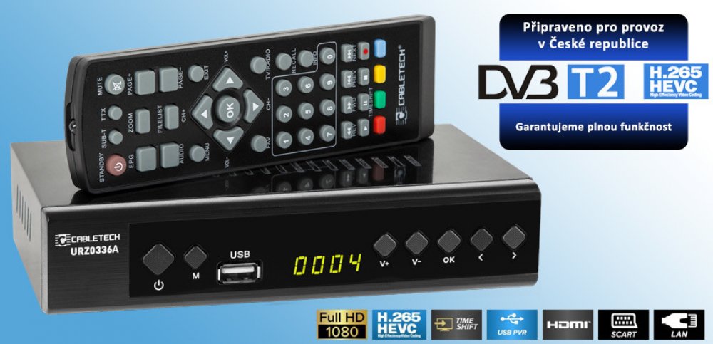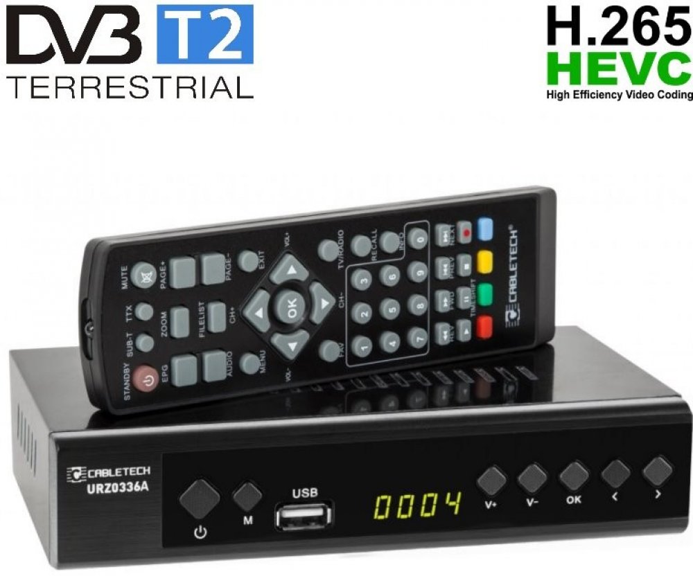 Model Cabletech URZ0336B umožňuje příjem digitálních kanálů ve standardech DVB-T a DVB-T2.