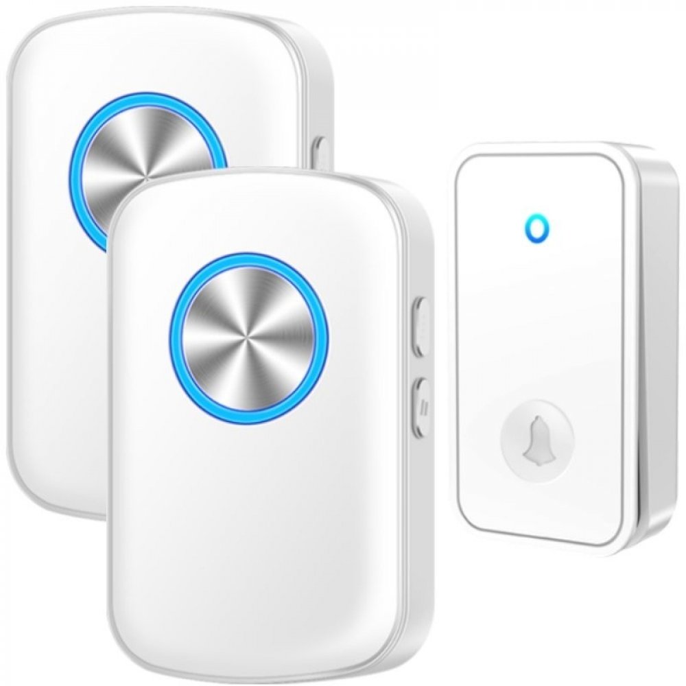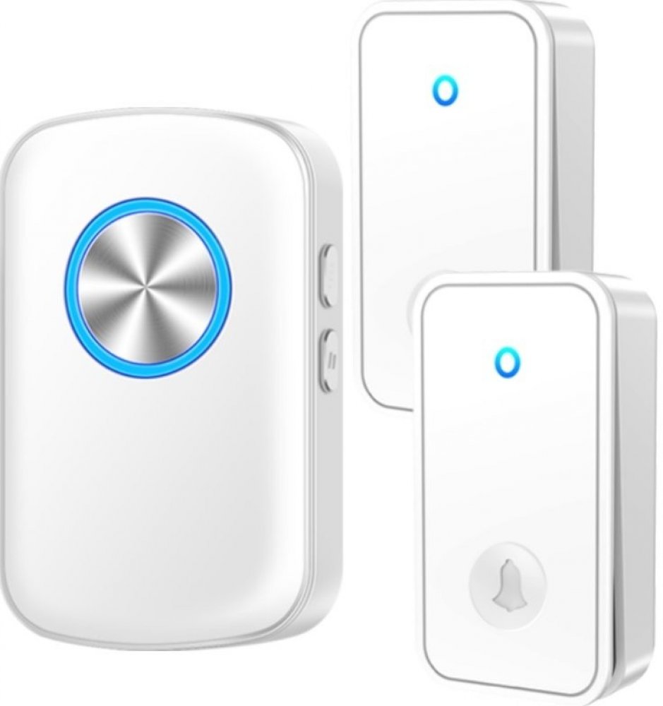 Bezdrátový bezbateriový zvonek Cacazi FA28, dosah signálu až 200 metrů, 60 melodií, 100dB, 5 stupňů nastavení hlasitosti. Kompletní sada zvonku - 1x přijímač + 1x tlačítko, barva bílá