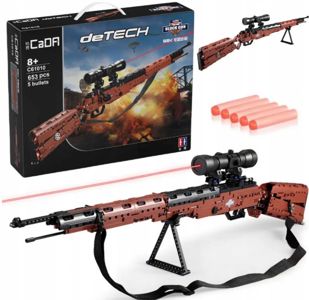 Stavebnice německé opakovací pušky z 2. světové války je kvalitně zpracovaná a svou konstrukcí odpovídá reálnému modelu. Sada umožňuje vlastnoručně postavit pušku Karabiner 98 Kurz včetně funkčního dalekohledu pro odstřelovače. Sestavená zbraň má pohyblivé části jako je spoušť, nabíjecí pákový závěr, zaostřování dalekohledu a také nosný popruh. Karabina může vystřelit projektil z měkčeného plastu. Kostky jsou robustní a mnoho dílků v sadě lze přemístit nebo otevřít. Sada obsahuje 653 stavebních prvků a 5 projektilů.